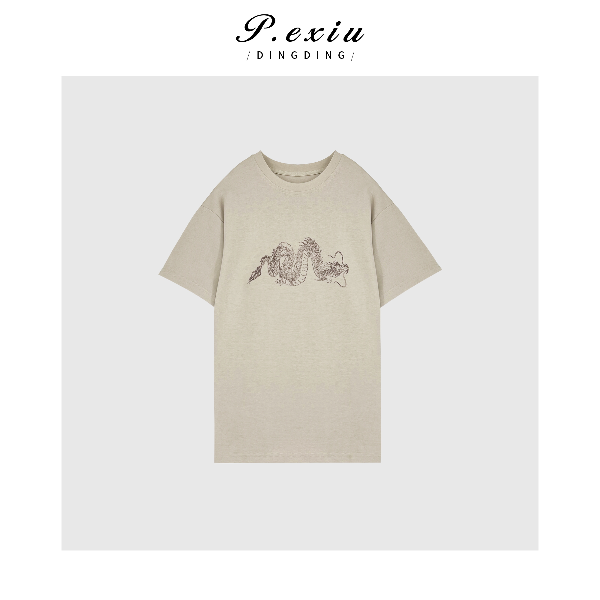 03-4潘依绣丁丁宠粉PanYiXiu/潘依绣【浅夏】新中式潮流创意印花圆领短袖T恤 WH00196
