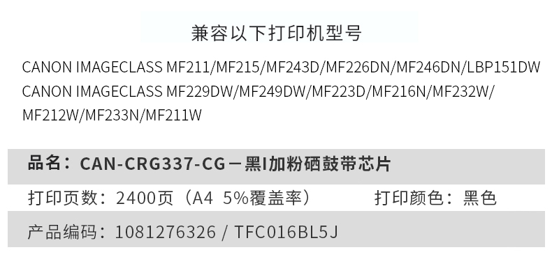 天威 CRG337硒鼓 适用佳能打印机mf211 215 243d 226dn 246dn lbp151dw 229dw 249dw 232w 223d 216n 236n