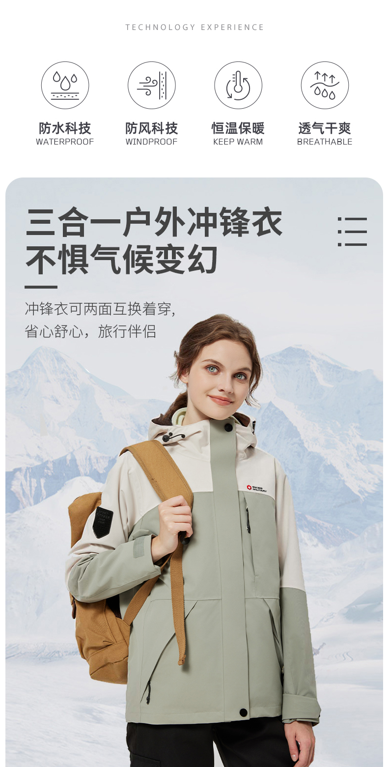 【瑞士百年户外专业品牌】SWISS MILITARY瑞士军工/二级冲锋衣, 全热封压胶冲锋衣/ 送背包 +内胆