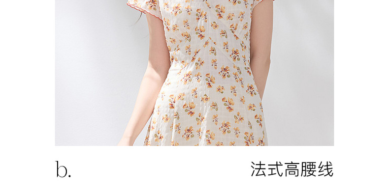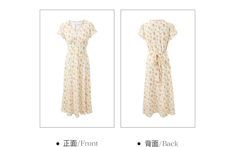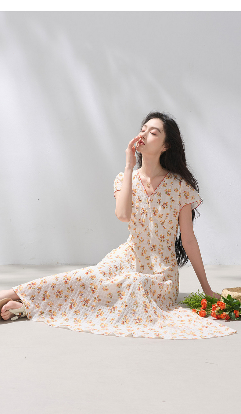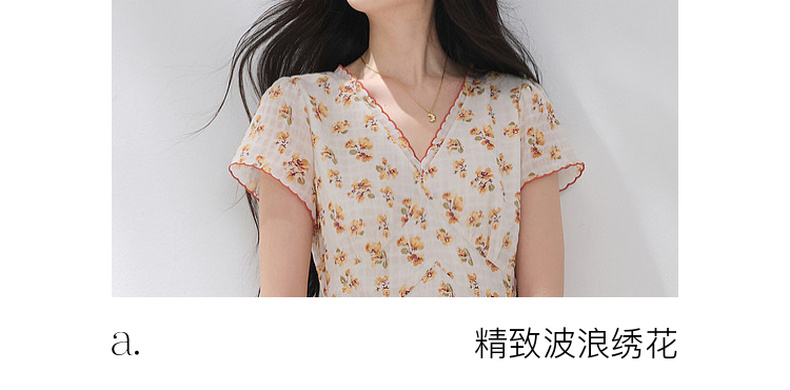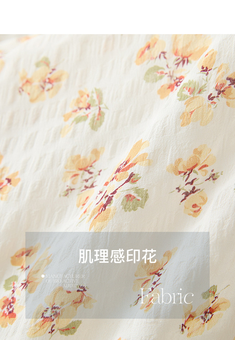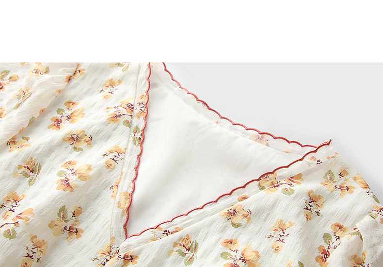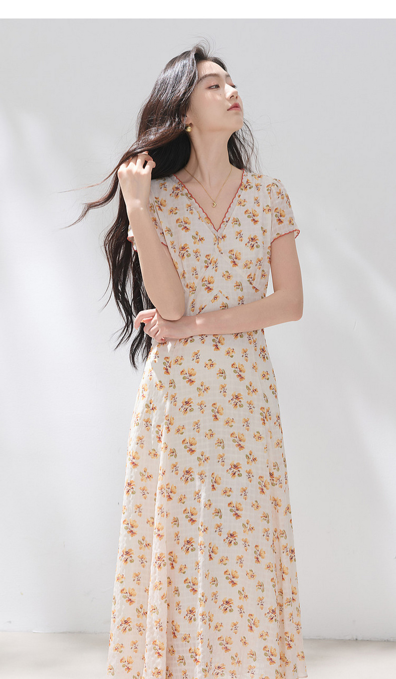 三彩2026夏季新款碎花连衣裙肌理感法式V领A字裙长裙M