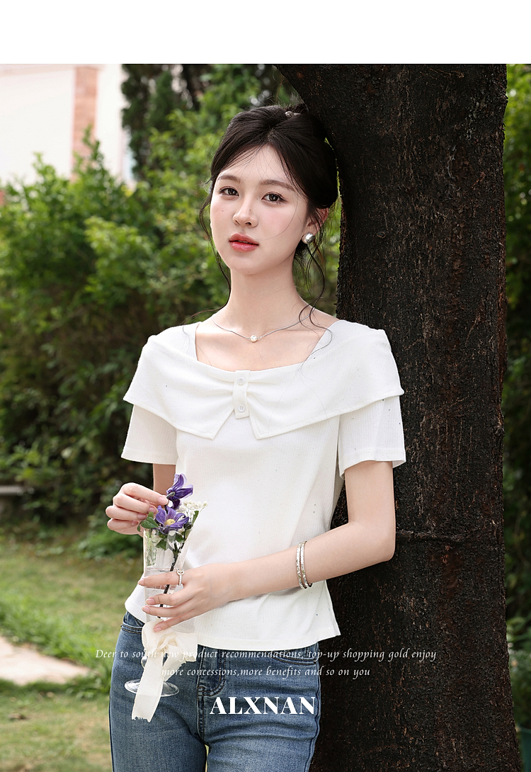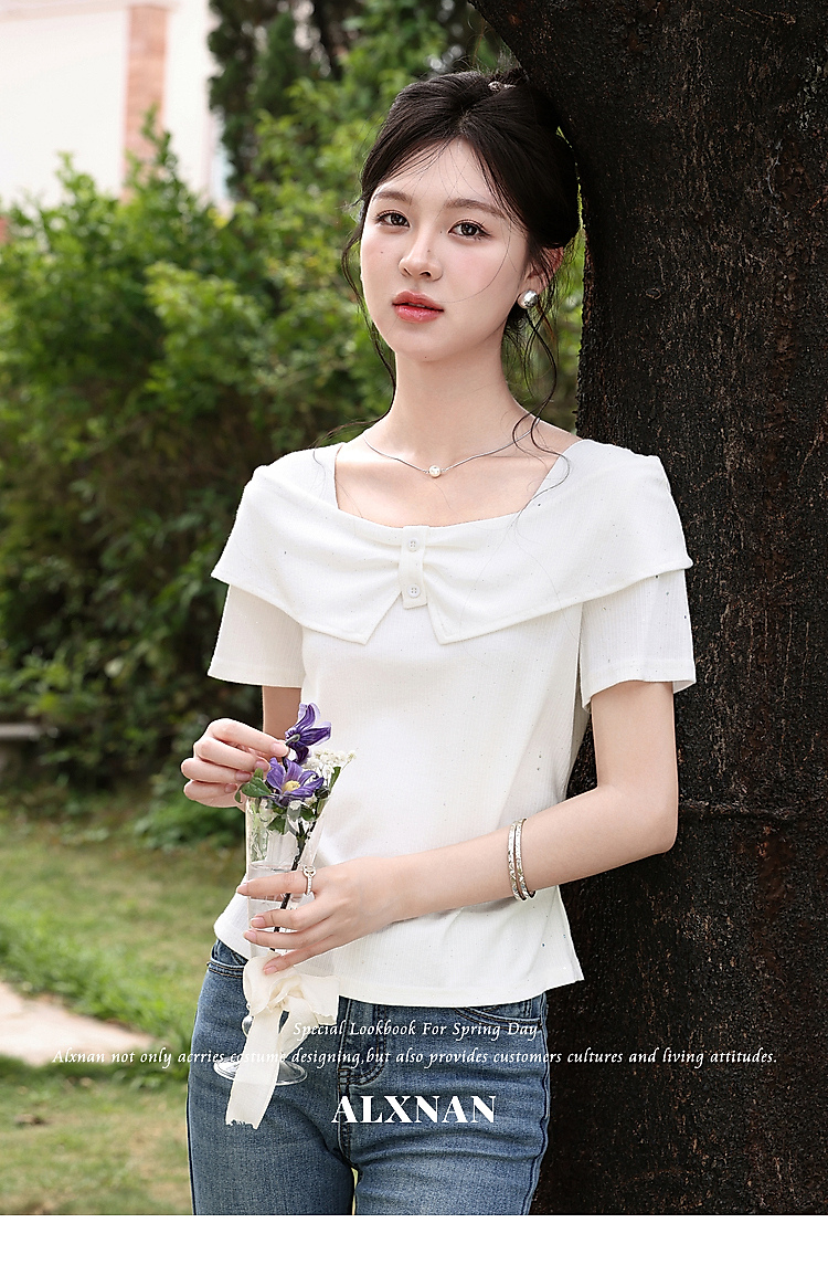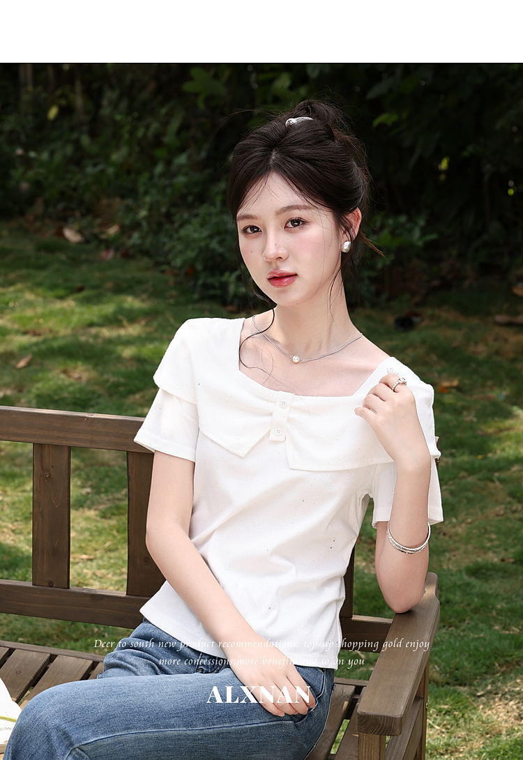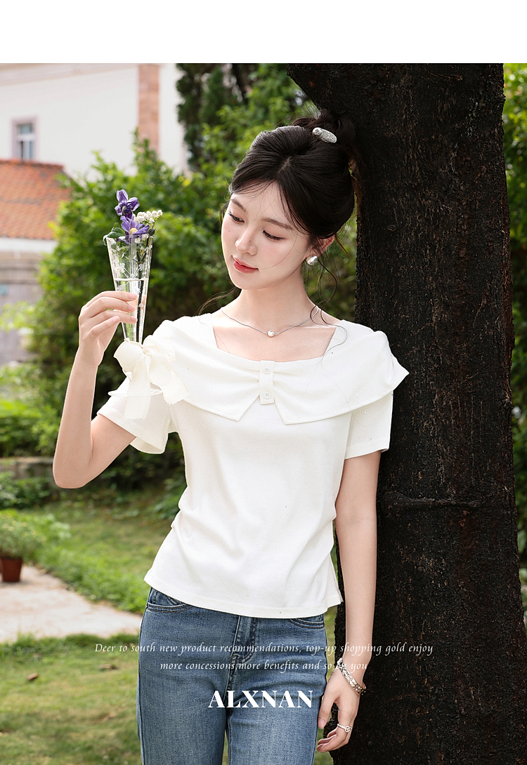 鹿向南【0417/20:00新品前1小时7折限量100件】设计感白色T恤女