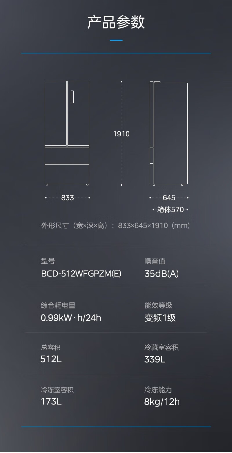 【限天津区域】美的/冰箱/BCD-526WUFGPZMA钻影灰