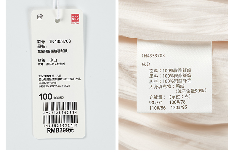 【棉羽】童装H型面包羽绒服1N4353703