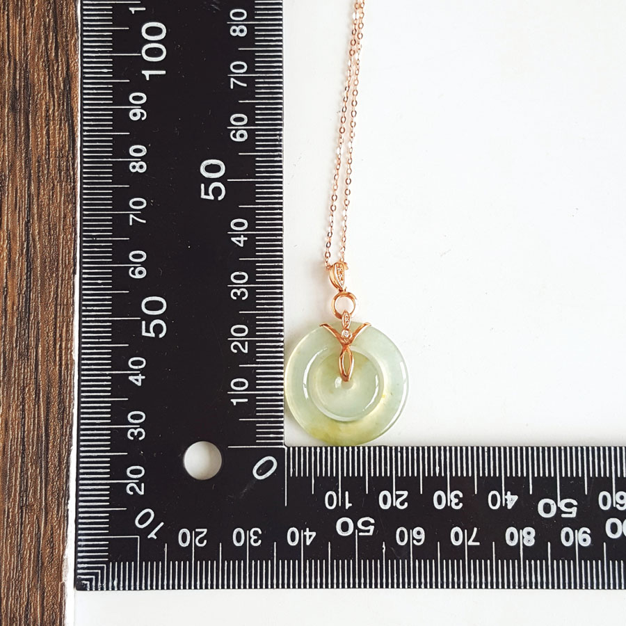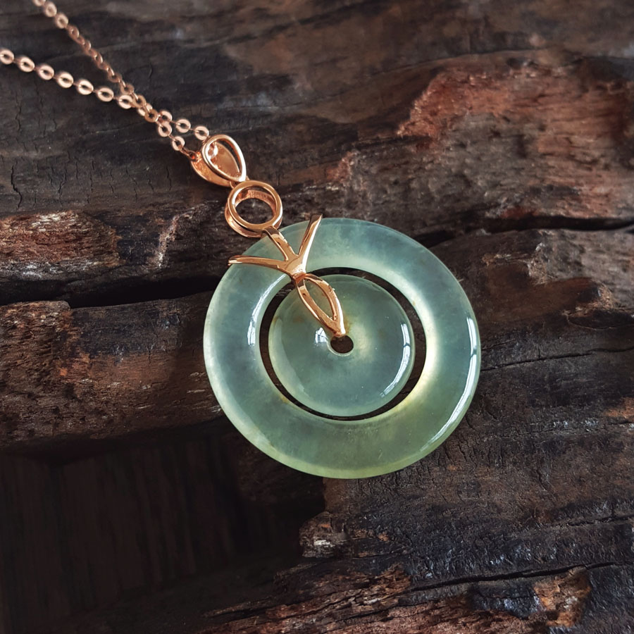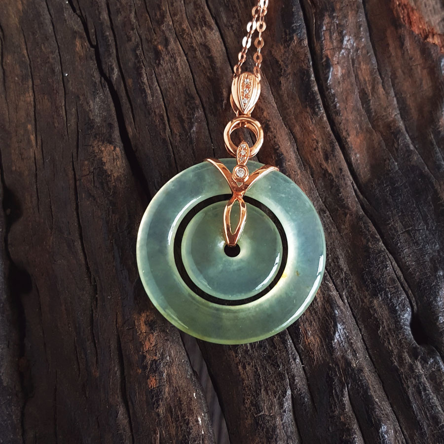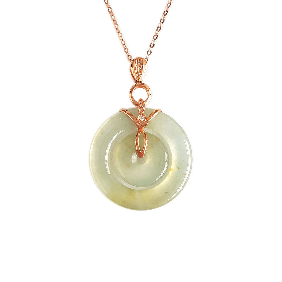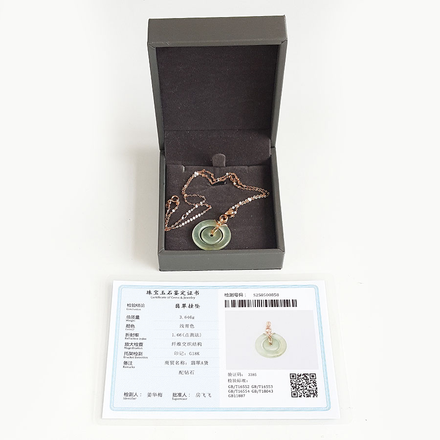 名称 | AU750玫瑰金镶钻镶天然冰种双平安扣翡翠吊坠项链 |