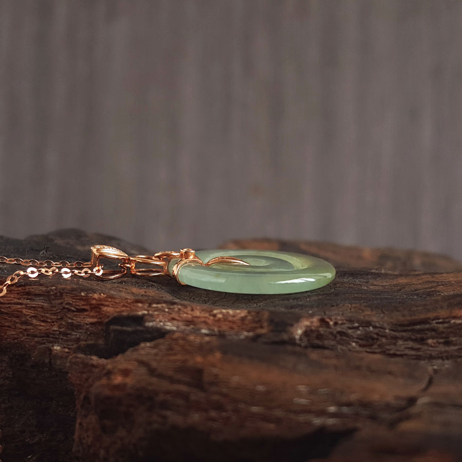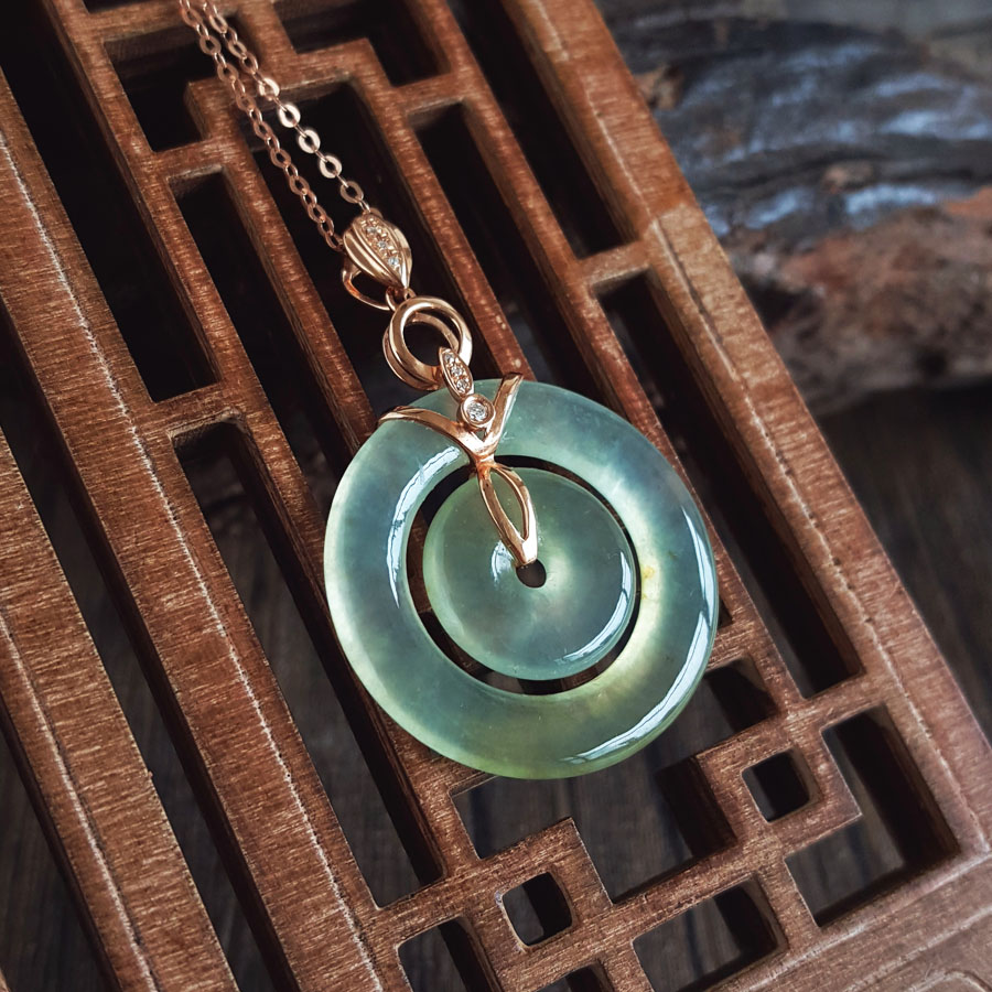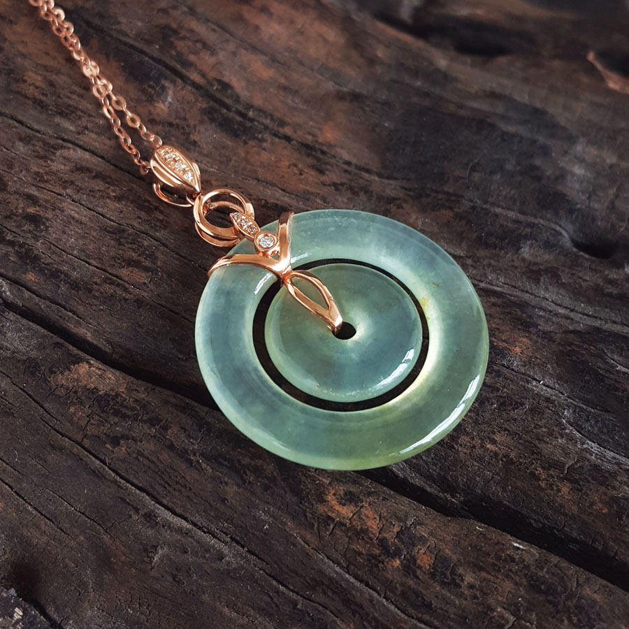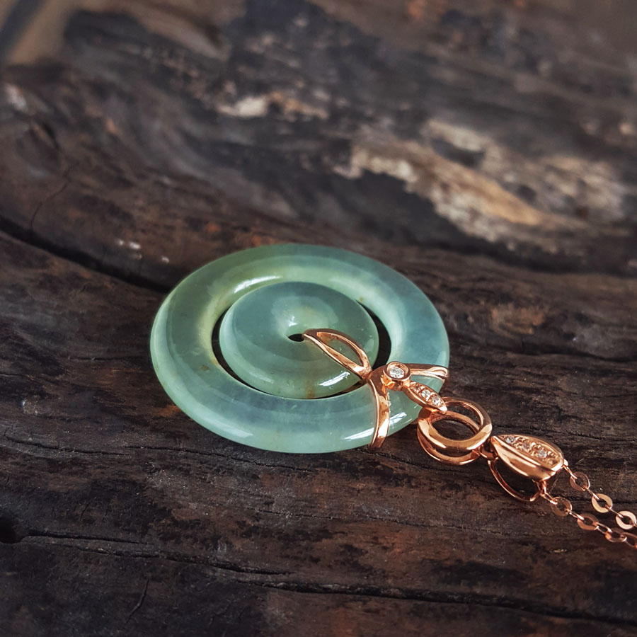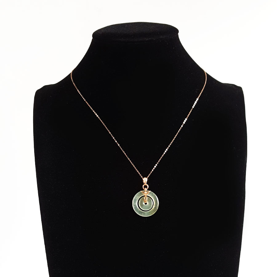 名称 | AU750玫瑰金镶钻镶天然冰种双平安扣翡翠吊坠项链 |