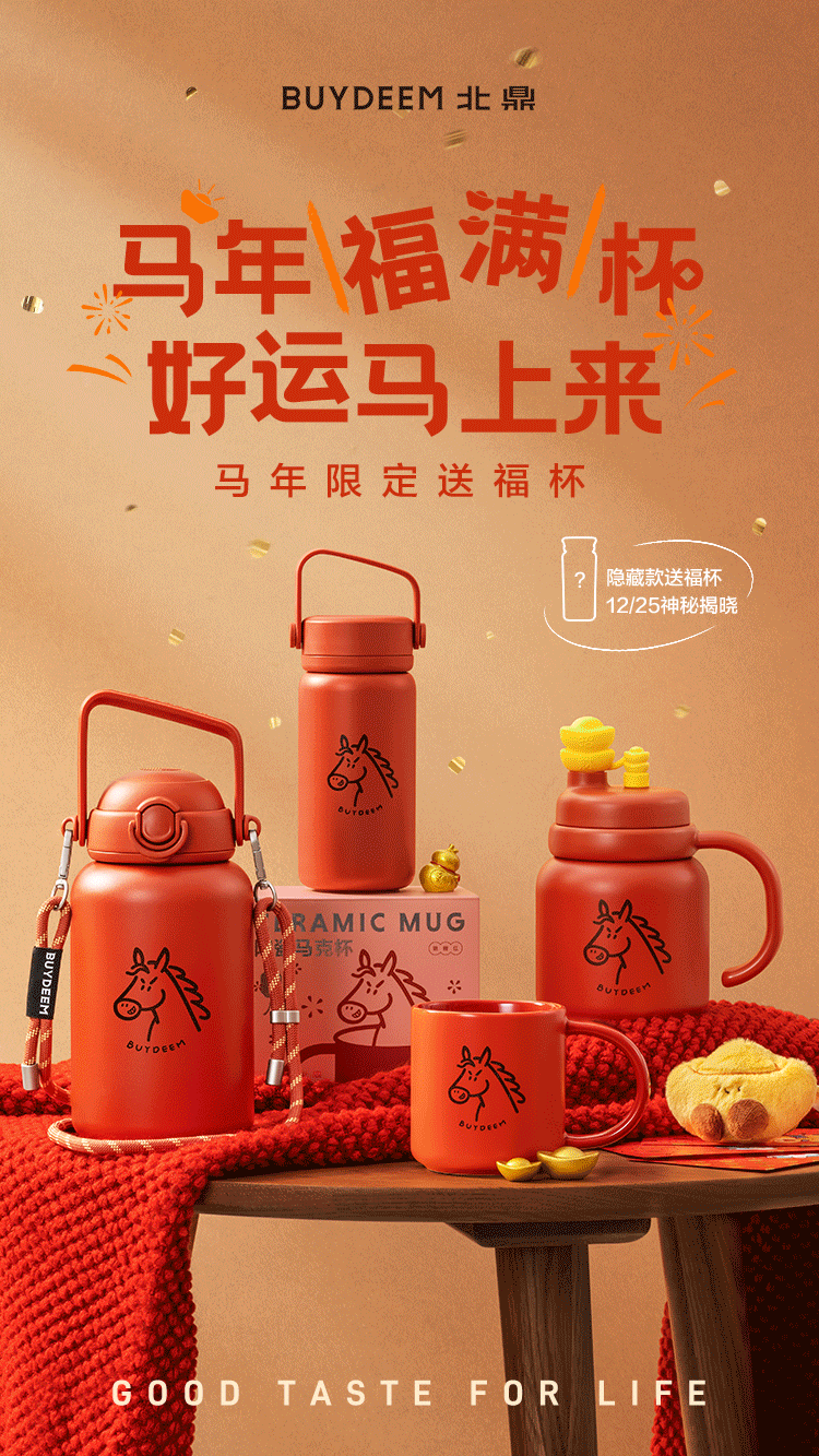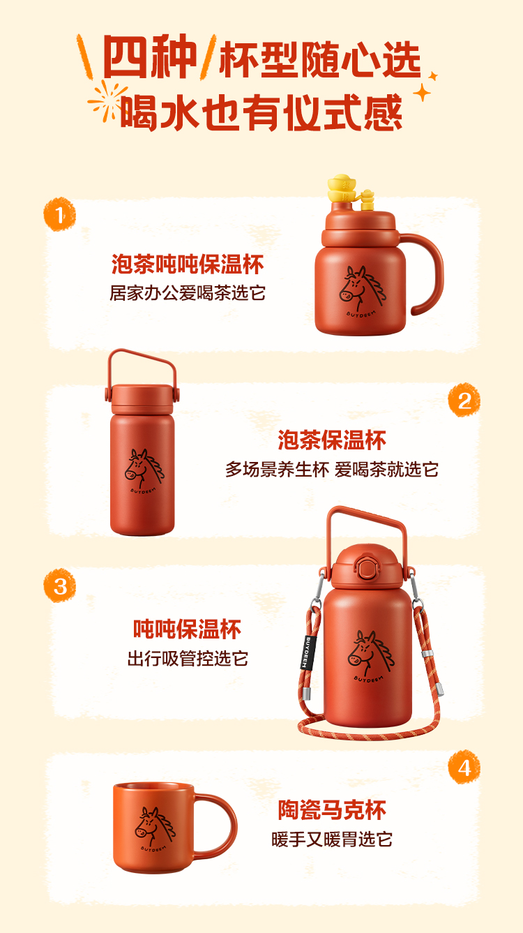 【新年限定】北鼎马年生肖系列保温杯马克杯泡茶杯吸管杯新年礼物 不带元宝挂件赠品