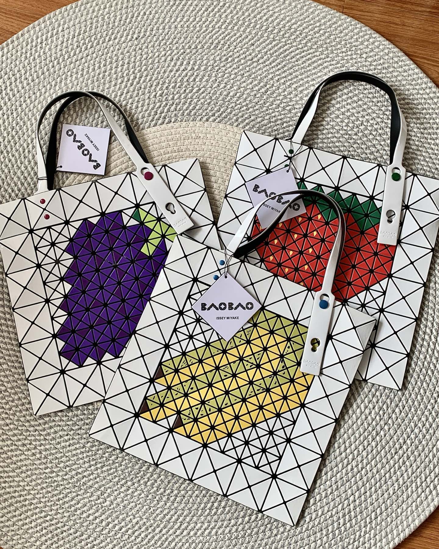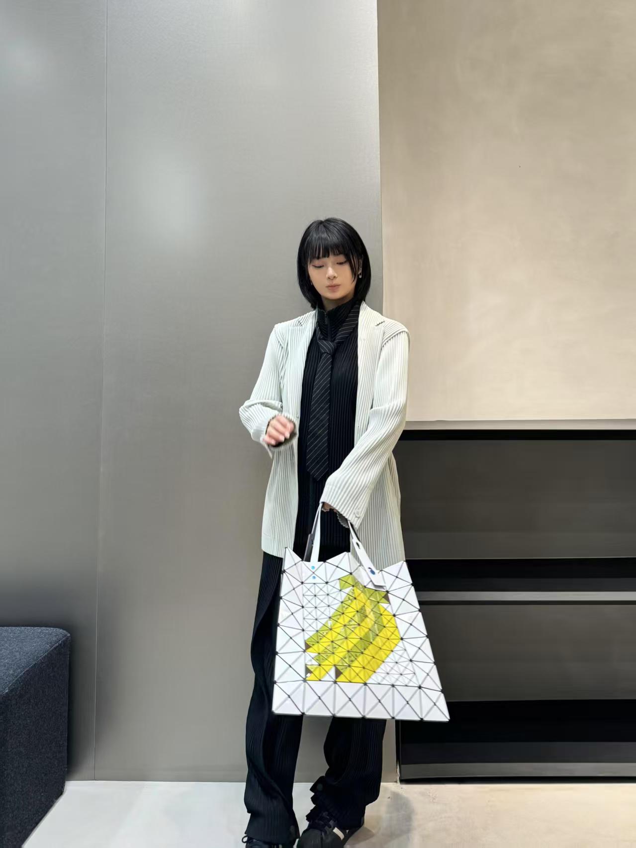 春天就是要甜到冒泡!三宅一生带着「水果灵感包袋」和大热门BAOBAO强势回归啦~ “YUMY”LUCENTTOTE6×6带有精致的水果图案,用原来四分之一的三角片替换了中间的碎片大小,可以创造出草莓、香蕉和葡萄的马赛克形状。袋子的简约和锐利设计与可爱的水果图案展现了包包独特的乐趣。草莓的特点是绿色的茎、红色的果实和黄色的种子,用压花和印刷描绘;香蕉展示黄色和浅绿色的三维效果,带有斑点以深褐色色调和压花表示;葡萄展示绿色茎,双色紫色果实,色调各异,有浮雕葡萄粒具有触觉效果,每个主题都呈现出很简洁却工艺很复杂的细节处理。 有着“面料魔术师”之称的三宅,将简约的现代与未来的科技链接到一起,力求与众不同,总能将简单的几何图案勾勒出无限的遐想空间,极简的设计风格,对称的美感,总能给我们一种~“原来包包还可以这个样子”内里带有防盗拉链隔层,贵重零散的小物件存取更实用,经典的手提包款可以装下A4文件和13英寸笔记本电脑