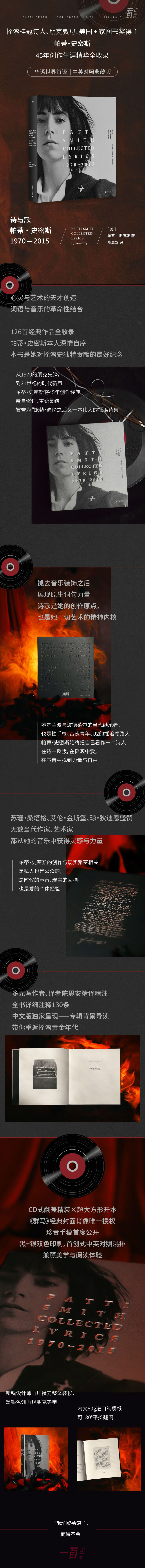 《诗与歌》收录摇滚诗人帕蒂 史密斯早期诗歌作品与45年创作生涯间发行的所有曲目歌词,是帕蒂 史密斯在音乐与写作中激情、大胆和*创性的最好证明。