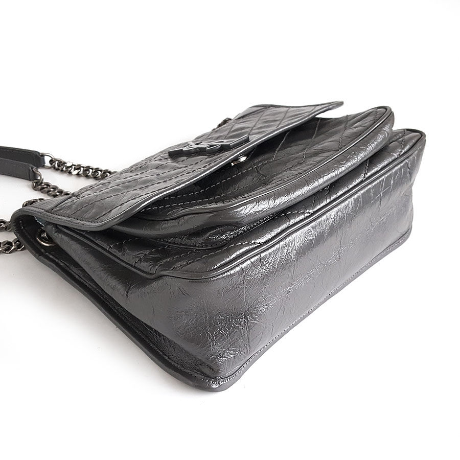 【95新】YSL圣罗兰NIKI系列633158中号灰色D扣niki链条包单肩包女士300326NJS09