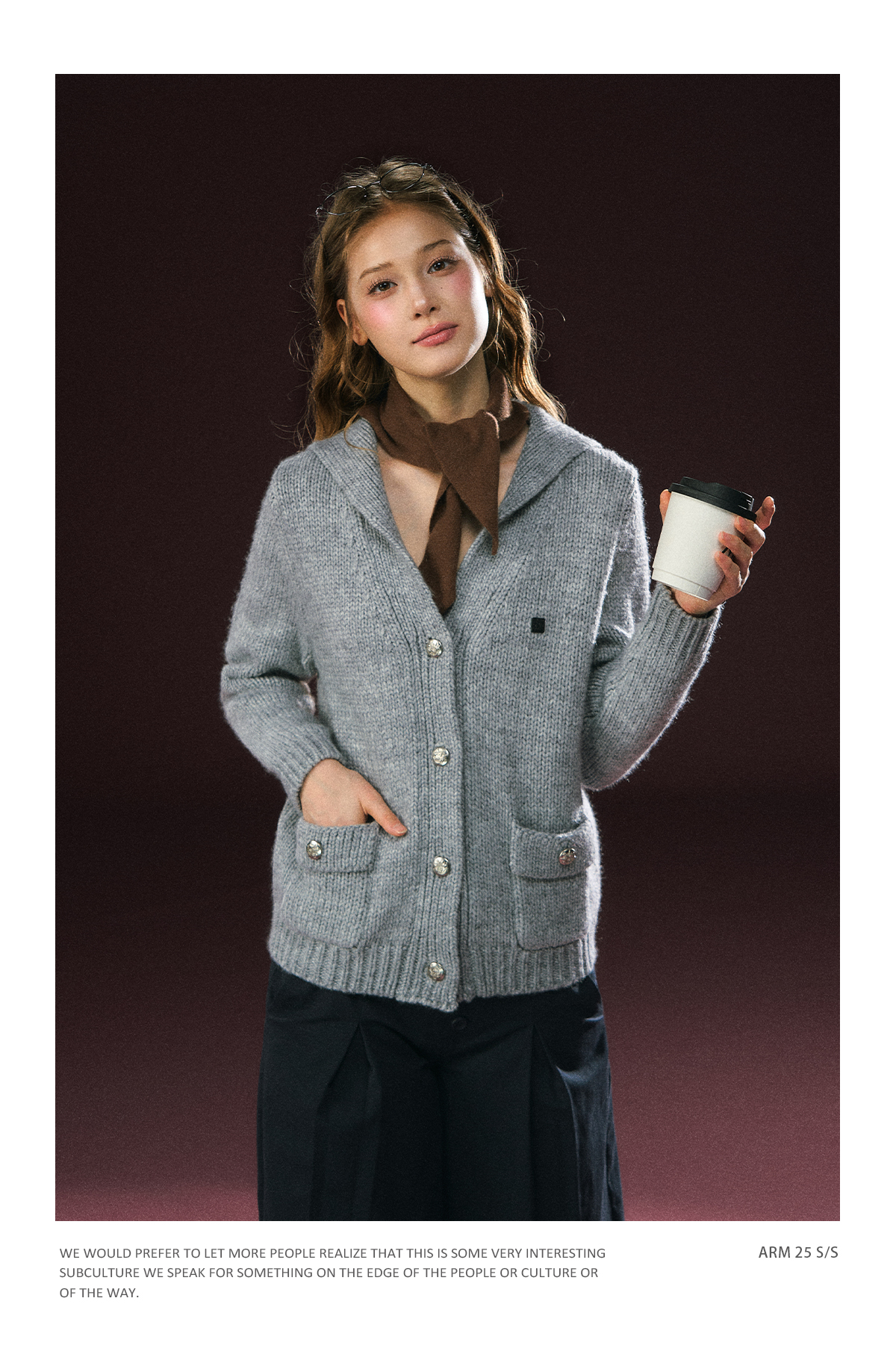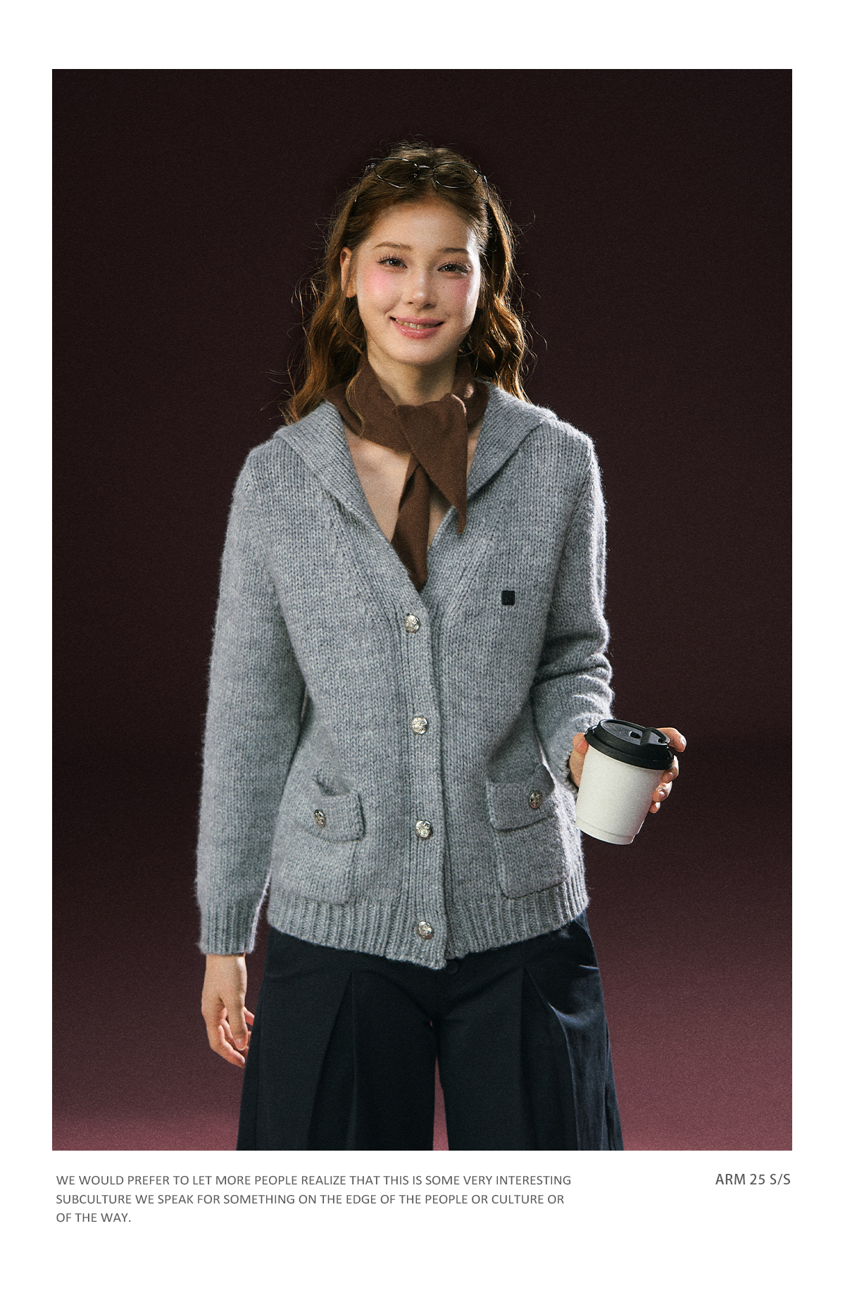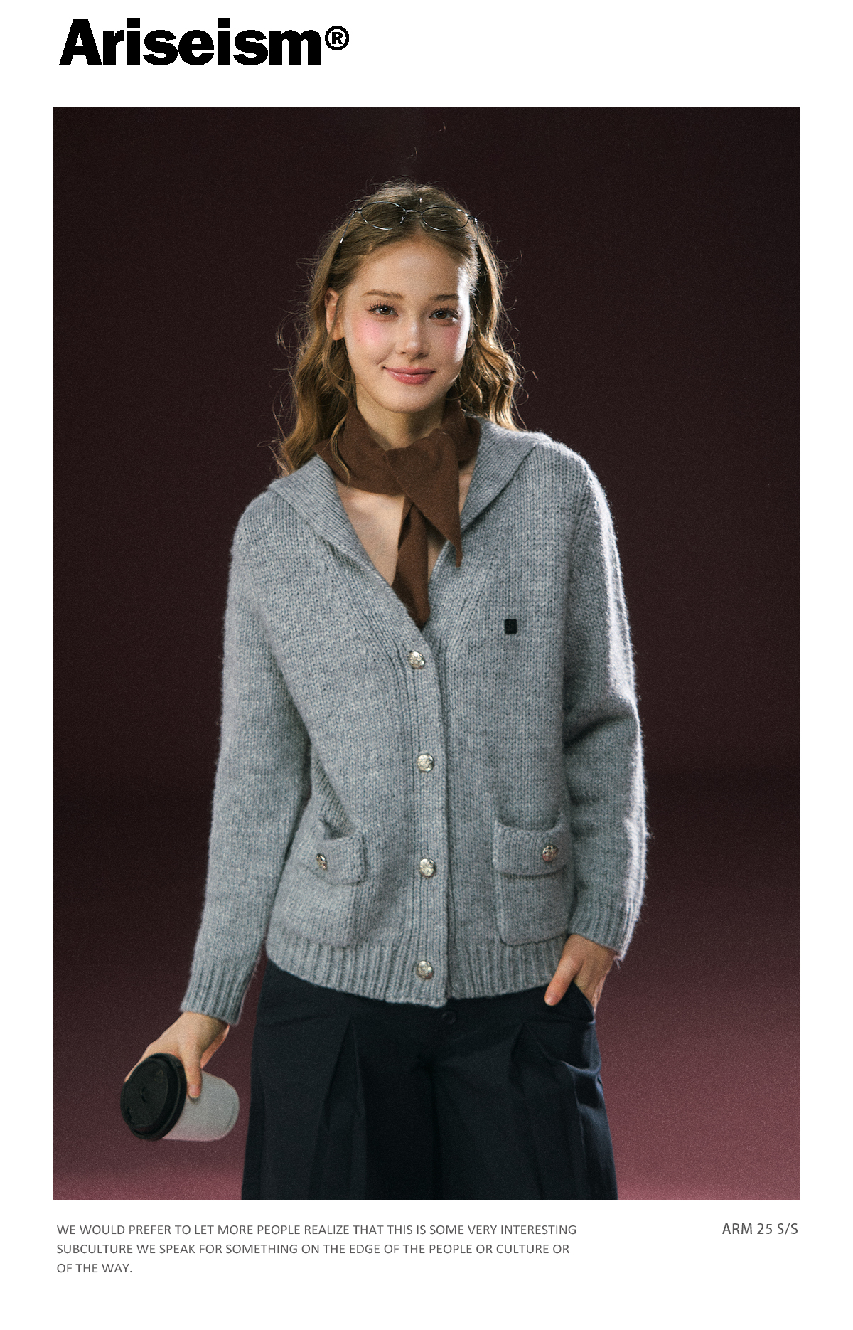 Ariseism 美式复古设计感开衫毛衣女秋冬新款修身上衣