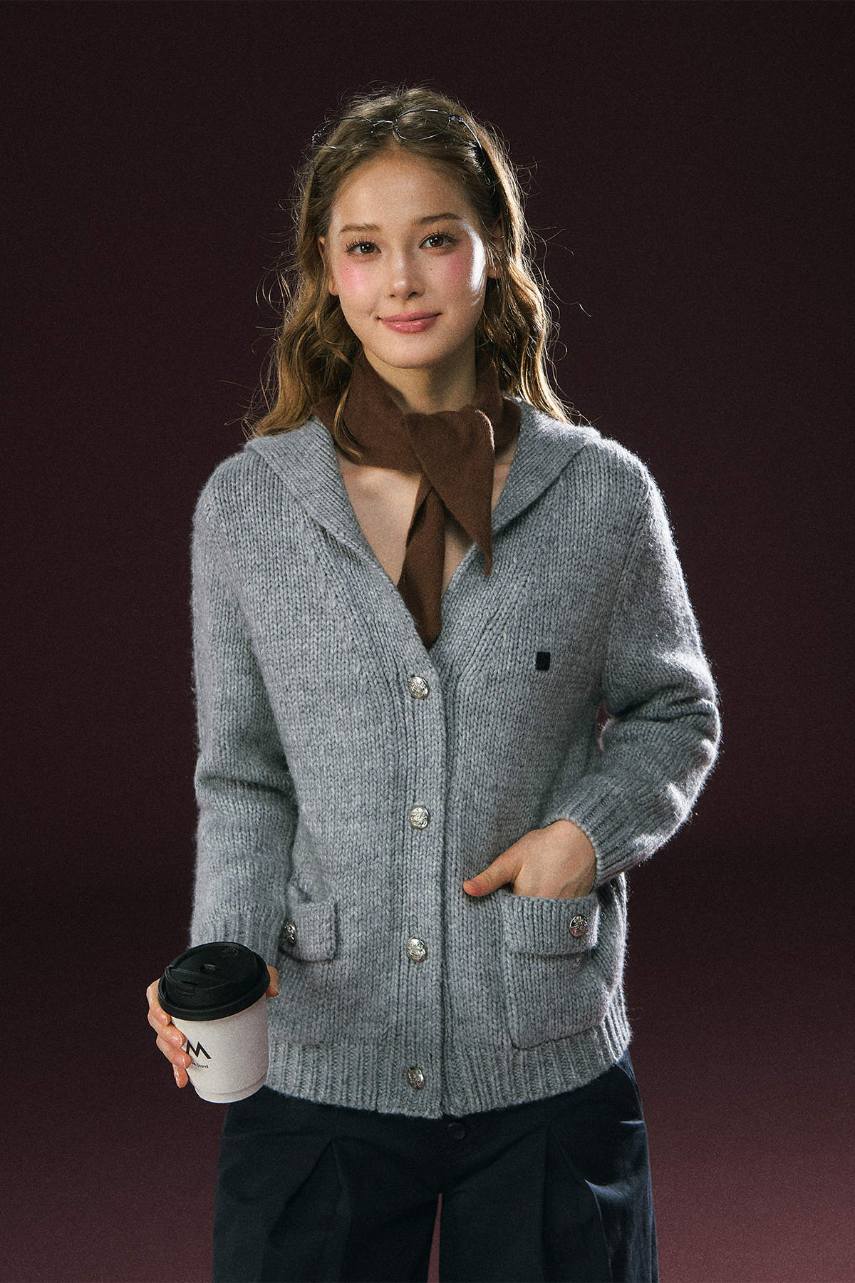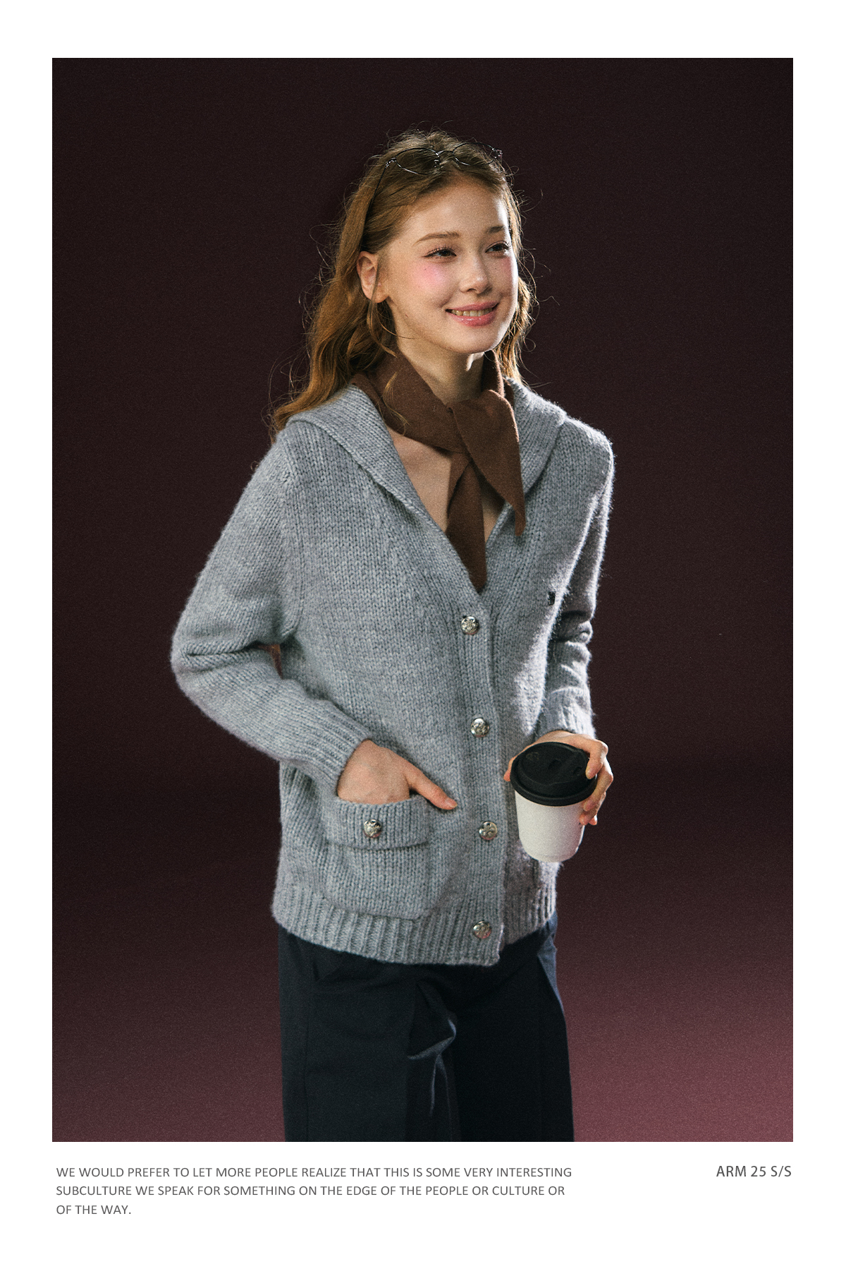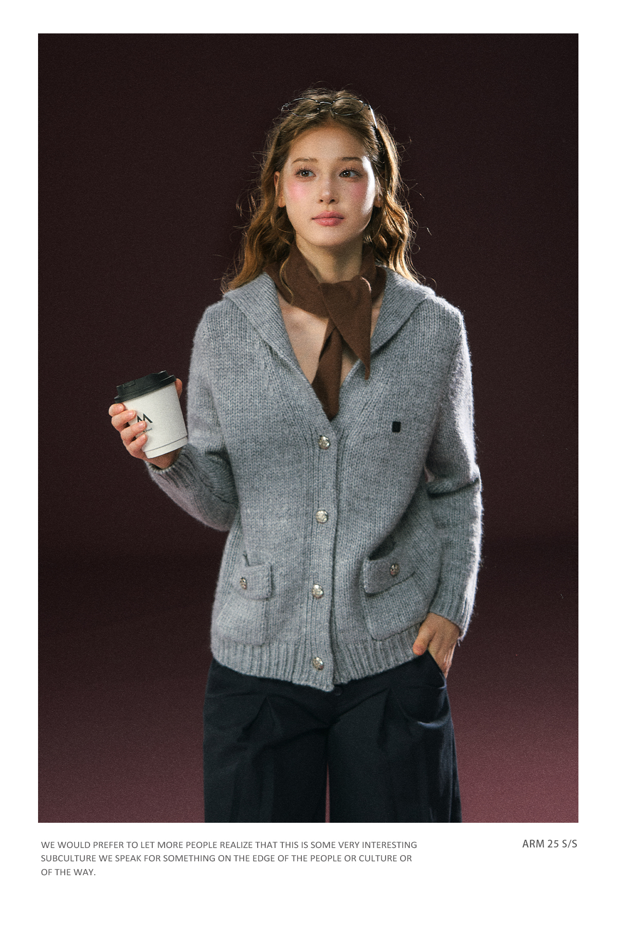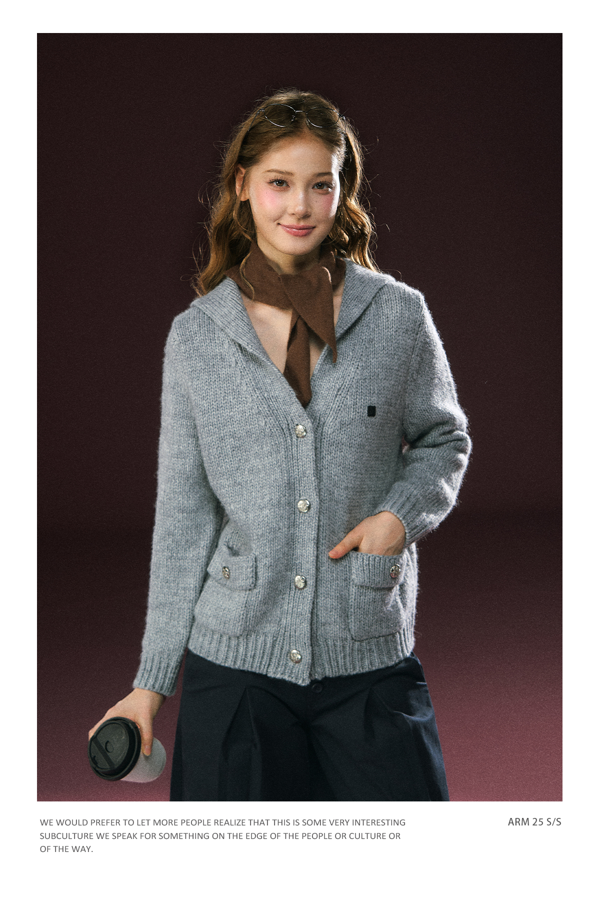 Ariseism 美式复古设计感开衫毛衣女秋冬新款修身上衣