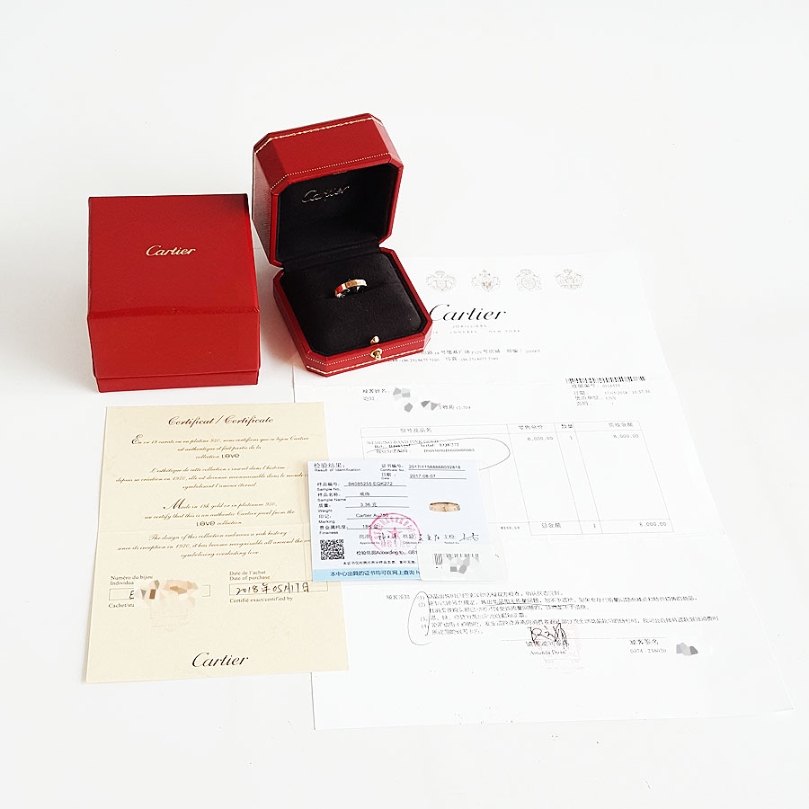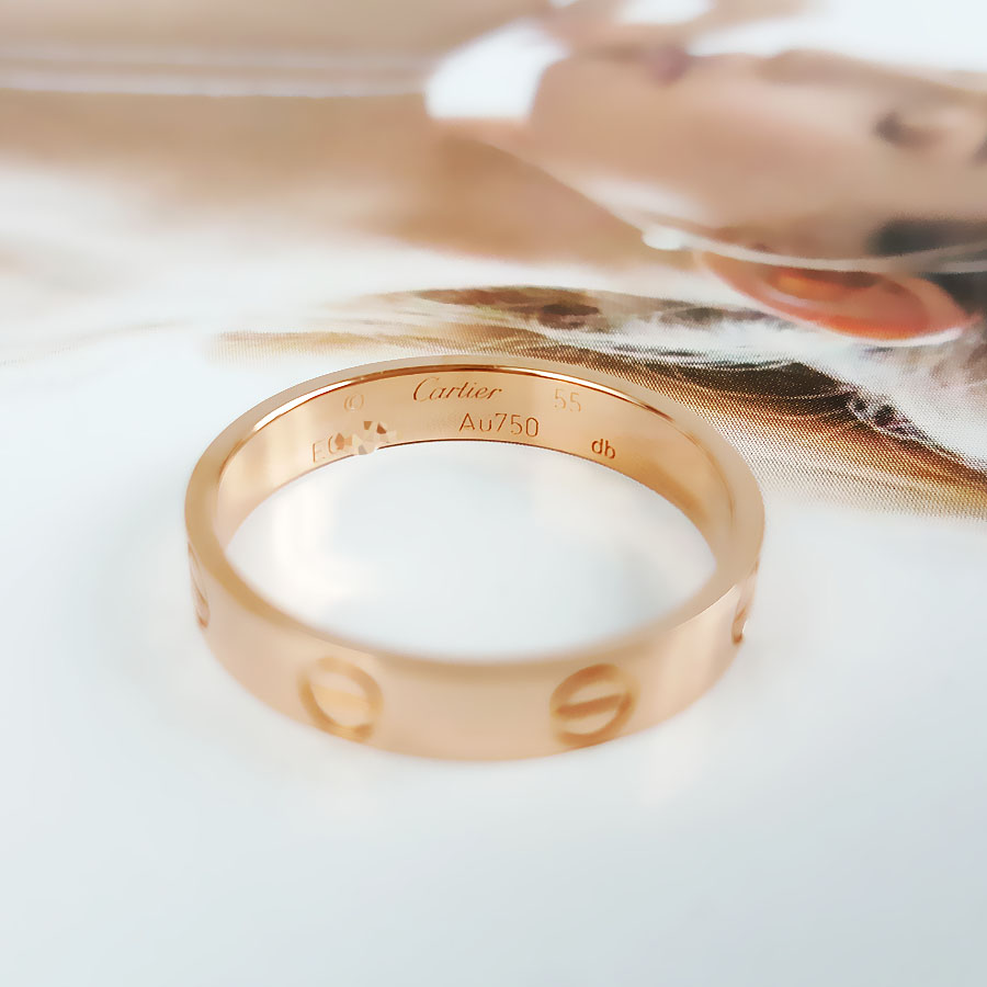 【95新】Cartier卡地亚LOVE系列B4085255玫瑰金窄版无钻LOVE戒指55号中性款020326NJS15