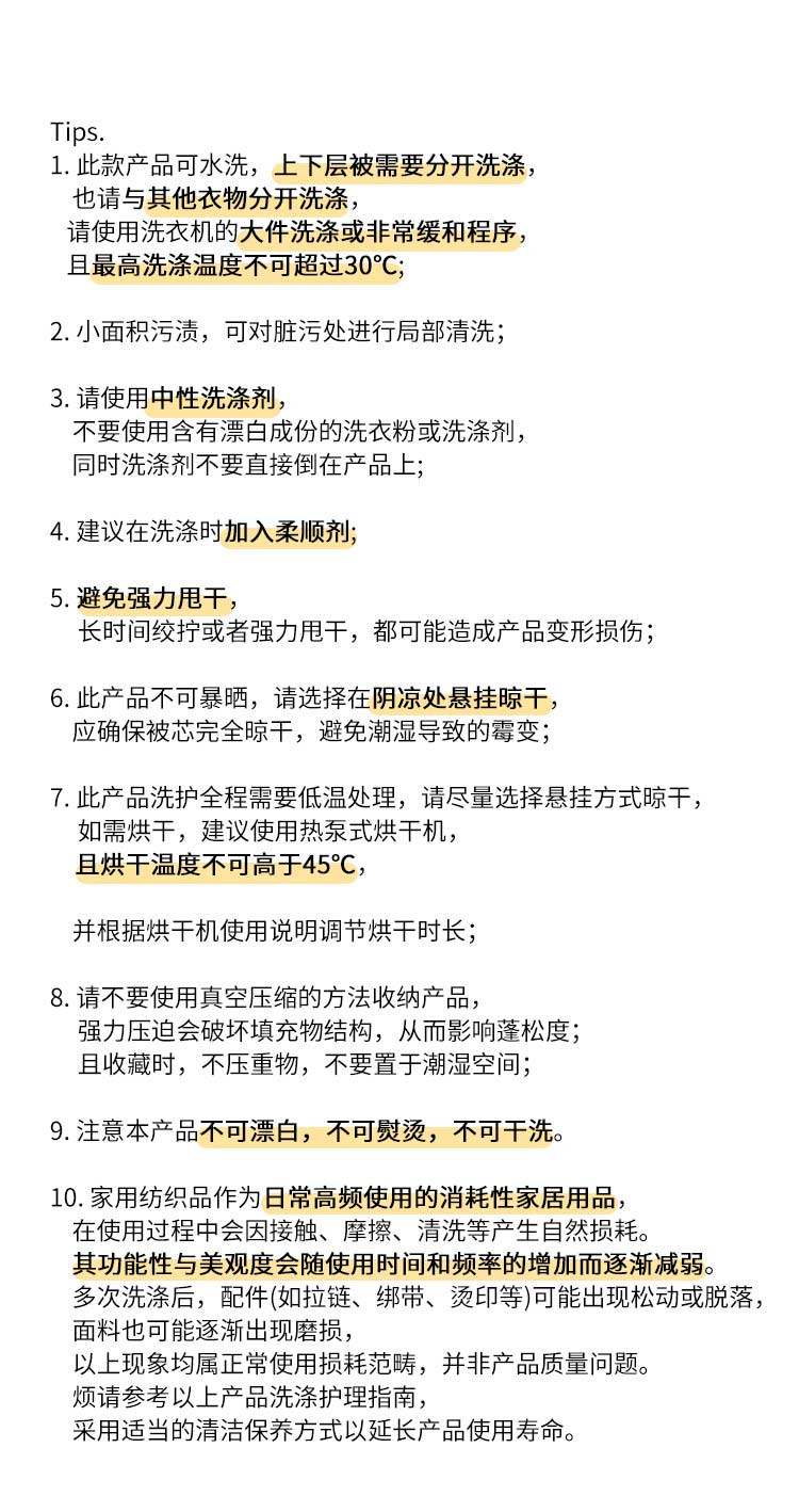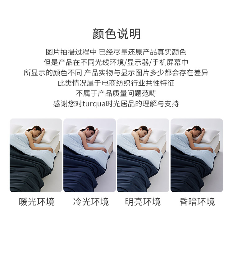 品名:turqua时光居品 双层酣睡被2.0 发货地:江苏/陕西 发货时间:下单后一般48-72小时内发货(周末、节假日除外) 发货快递:中通、邮政/圆通/极兔快递(以实际发货为准,暂不支持指定快递) 运费政策:该商品全国部分地区包邮(宁夏、海南、内蒙古、甘肃需补差运费5元/件,新疆、西藏、青海需补差运费20元/件,港澳台不发货,请知悉) 售后政策:本品包装配件完整、未拆封、不影响二次销售支持7天无理由退换货(无运费险),非质量问题退换货需要买家自行承担寄出的运费,不接受到付,请知悉 注意:床品经过下水不接受退换货,无论退货还是换货都需要原包装寄回。 温馨提醒:因显示器像素差异与拍摄灯光原因,图片与实物颜色可能存在些许差异,具体请以收到实物为准。 |