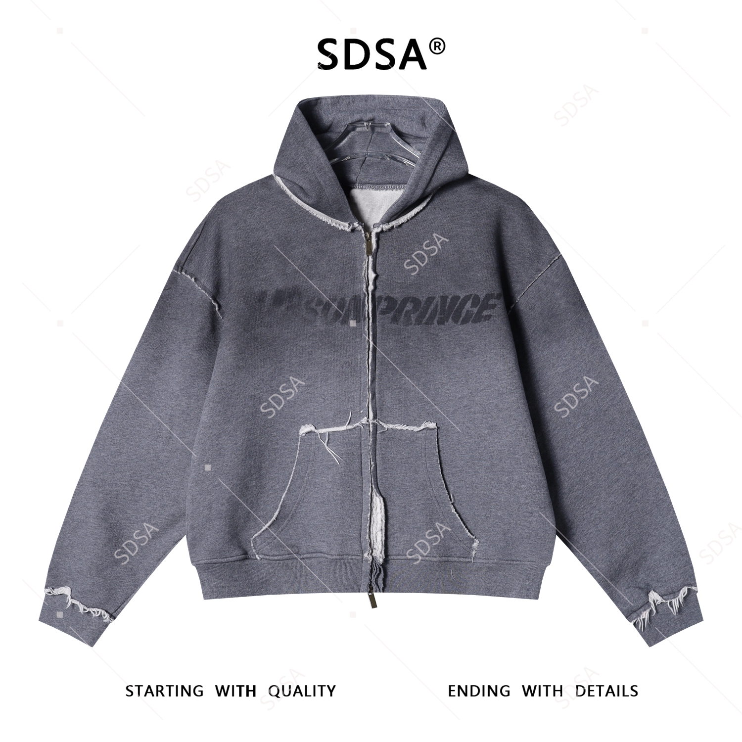 Y002SDSA秋冬新款痞帅男装美式渐变字母印花磨边拉链连帽卫衣百搭宽松