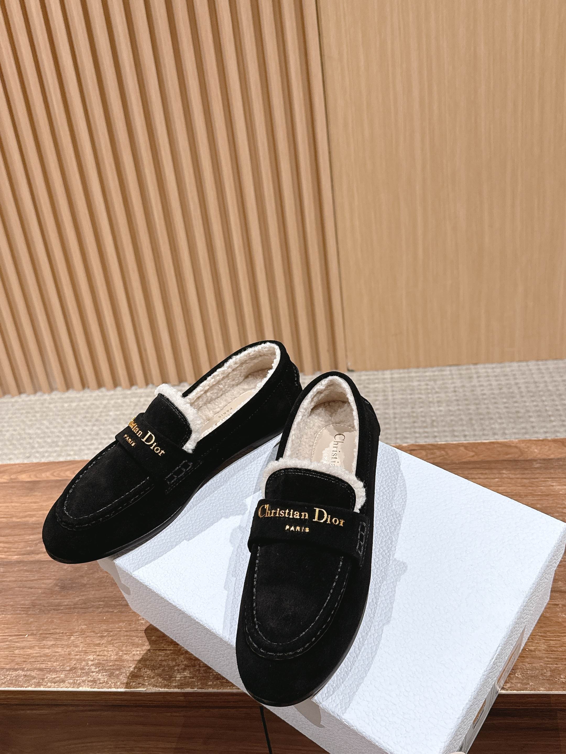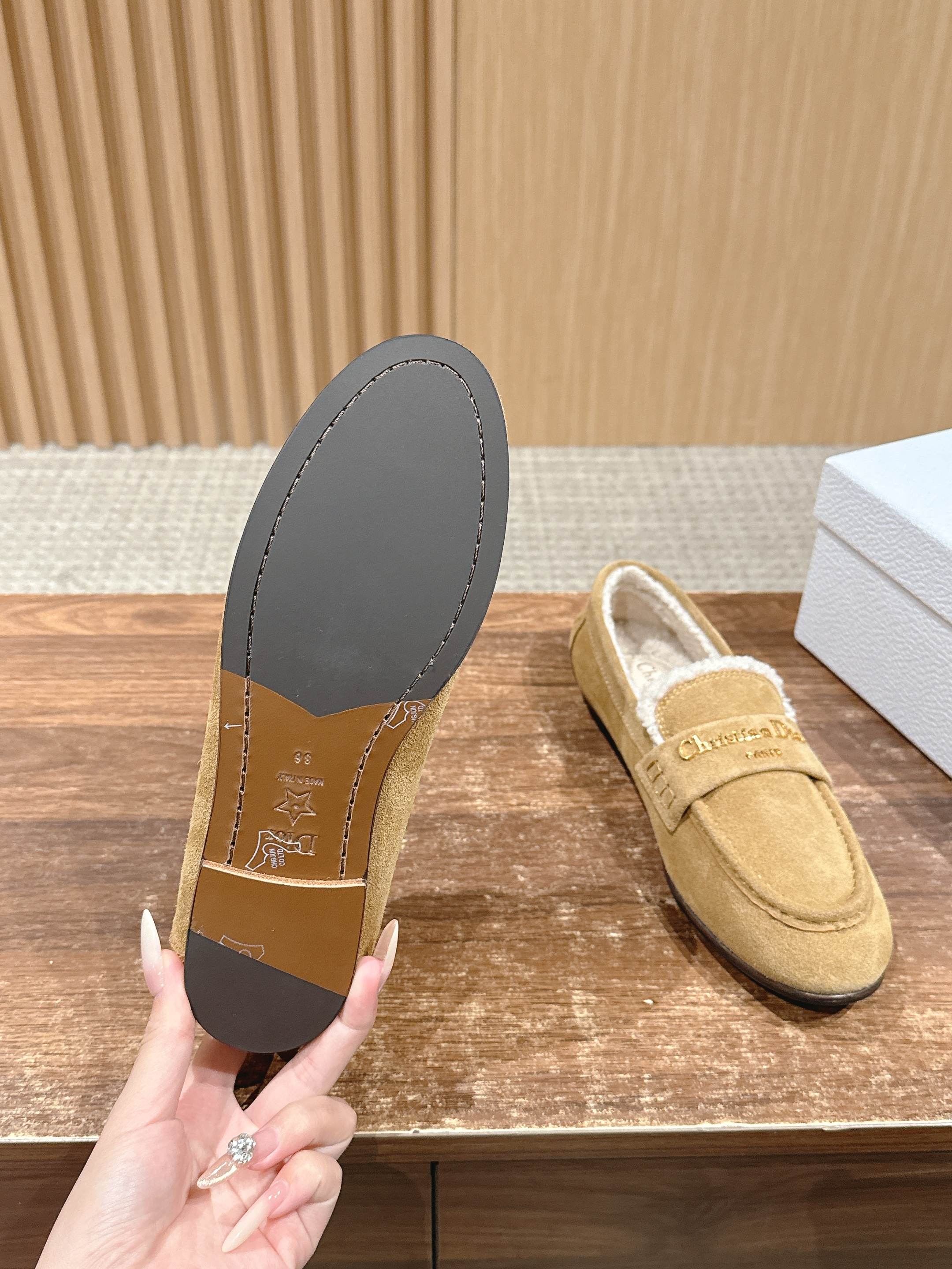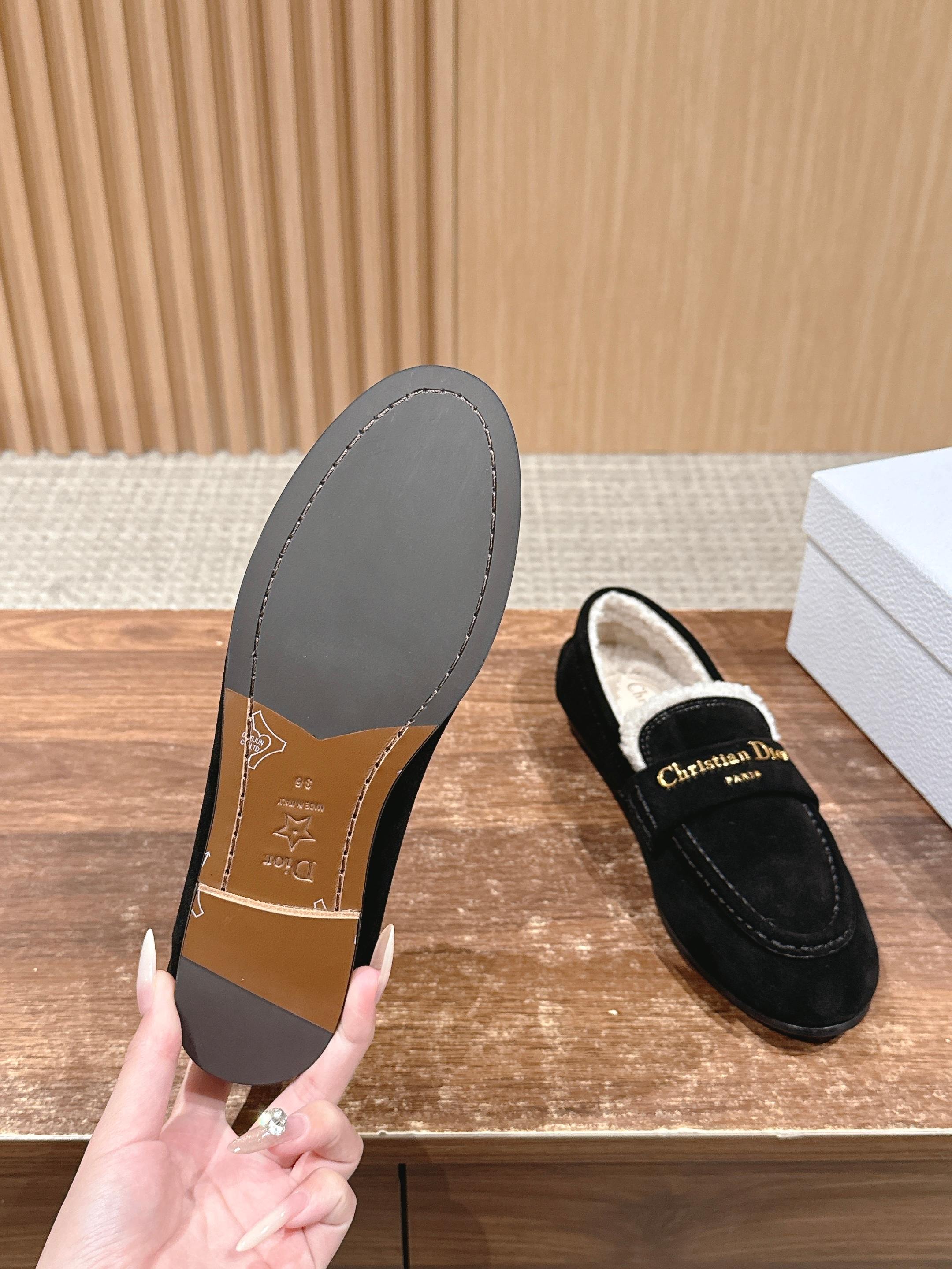 𝐂𝐡𝐫𝐢𝐬𝐭𝐢𝐚𝐧 𝐃𝐢𝐨𝐫 迪奥秋冬新款羊毛玛丽珍乐福鞋平底鞋 鞋面采用反绒皮麂皮材质,触感柔软且自带复古质感;鞋口和内里加入毛绒设计,既提升保暖性,又增添温柔氛围;鞋身饰有金色“Christian Dior PARIS”金属 Logo,彰显品牌辨识度与轻奢感。 延续乐福鞋“一脚蹬”的便捷版型,兼具休闲感与优雅气质;低帮、圆头的设计,适配多种脚型,舒适又显利落。搭配直筒牛仔裤、浅色系休闲裤或针织阔腿裤。 牛反绒材质 绵羊毛内里 真皮大底 Size:35-39(40/41定制不退换)