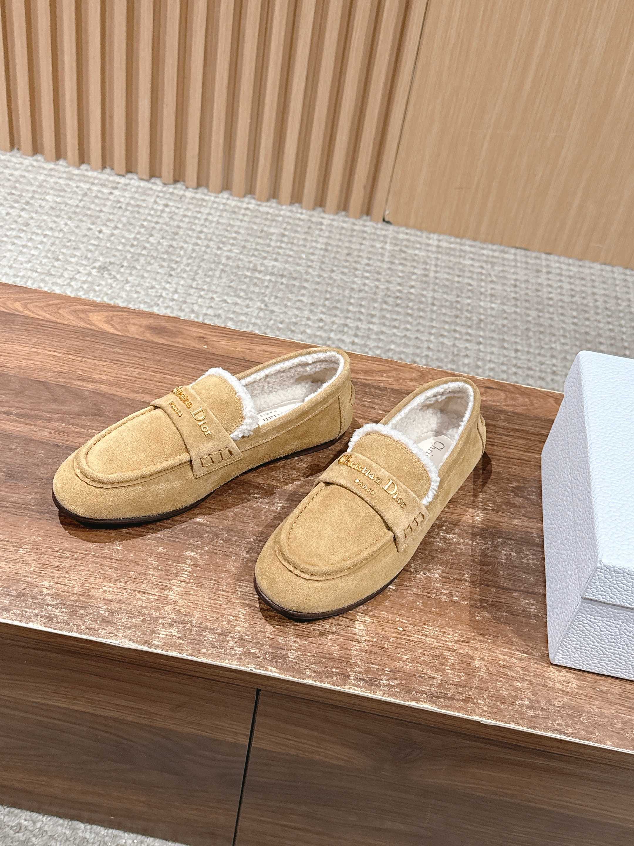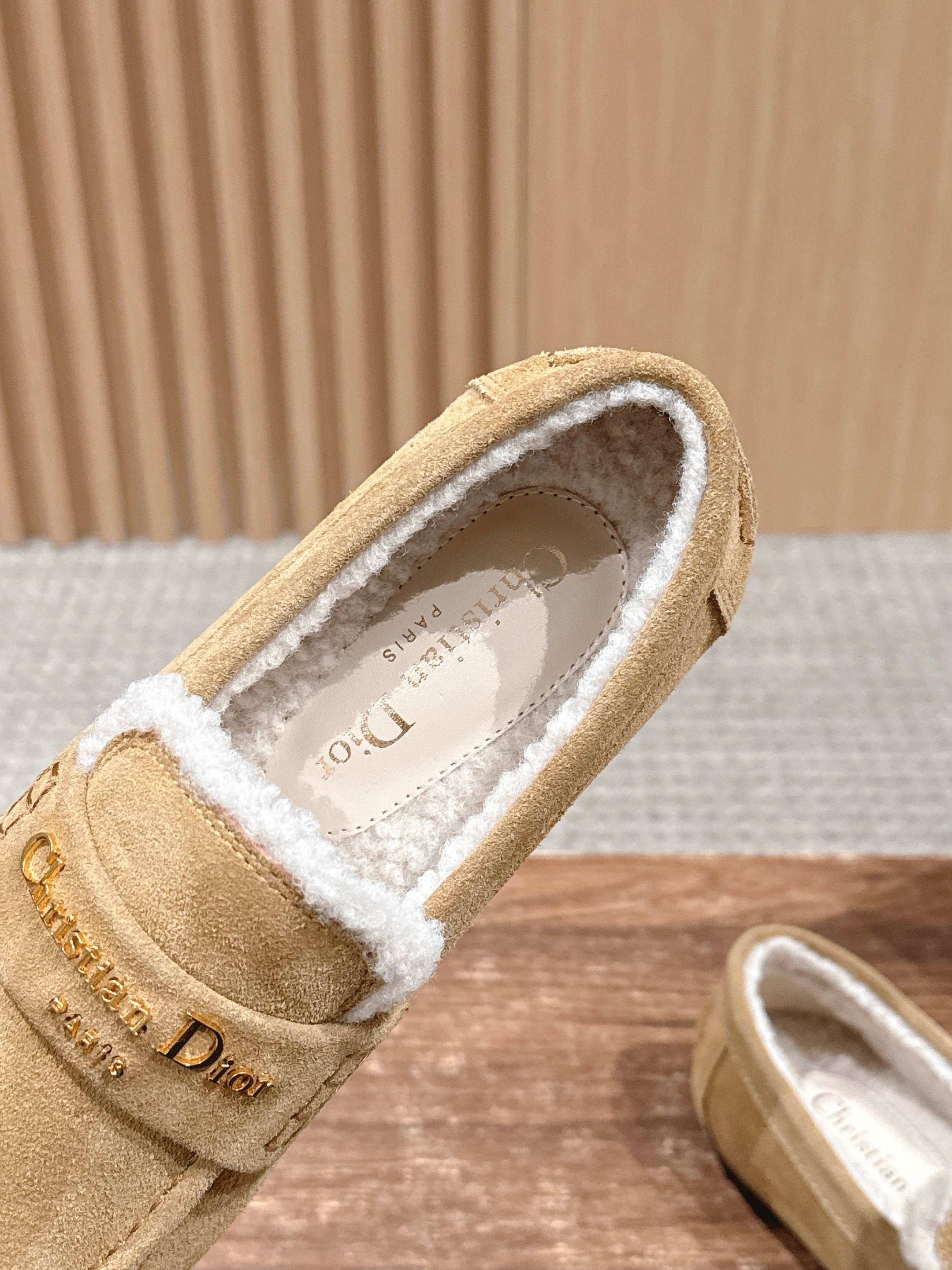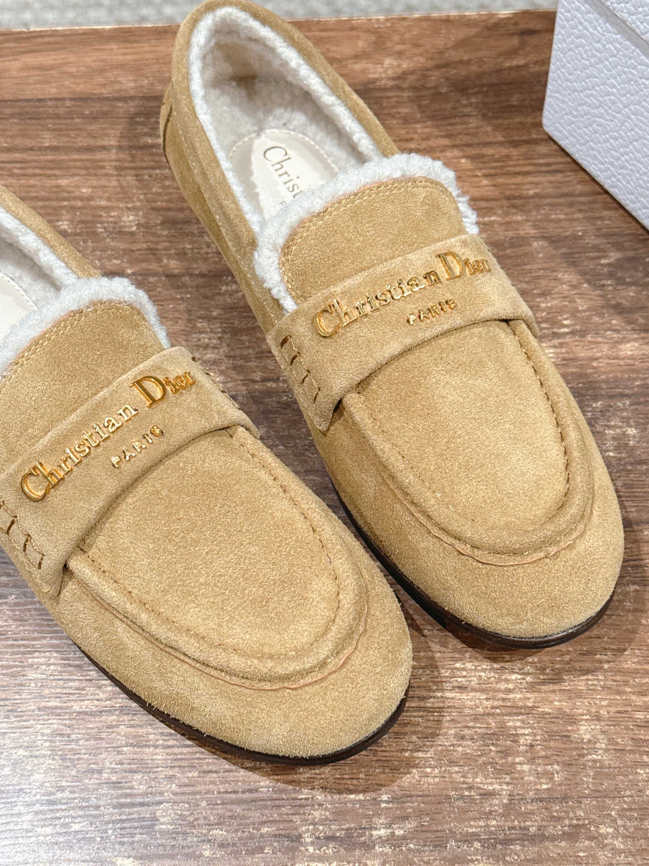𝐂𝐡𝐫𝐢𝐬𝐭𝐢𝐚𝐧 𝐃𝐢𝐨𝐫 迪奥秋冬新款羊毛玛丽珍乐福鞋平底鞋 鞋面采用反绒皮麂皮材质,触感柔软且自带复古质感;鞋口和内里加入毛绒设计,既提升保暖性,又增添温柔氛围;鞋身饰有金色“Christian Dior PARIS”金属 Logo,彰显品牌辨识度与轻奢感。 延续乐福鞋“一脚蹬”的便捷版型,兼具休闲感与优雅气质;低帮、圆头的设计,适配多种脚型,舒适又显利落。搭配直筒牛仔裤、浅色系休闲裤或针织阔腿裤。 牛反绒材质 绵羊毛内里 真皮大底 Size:35-39(40/41定制不退换)