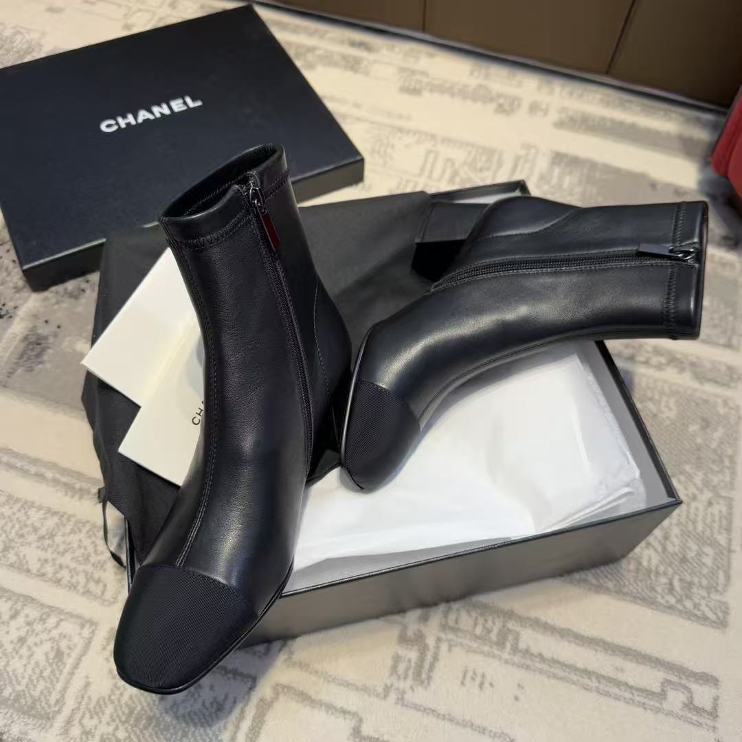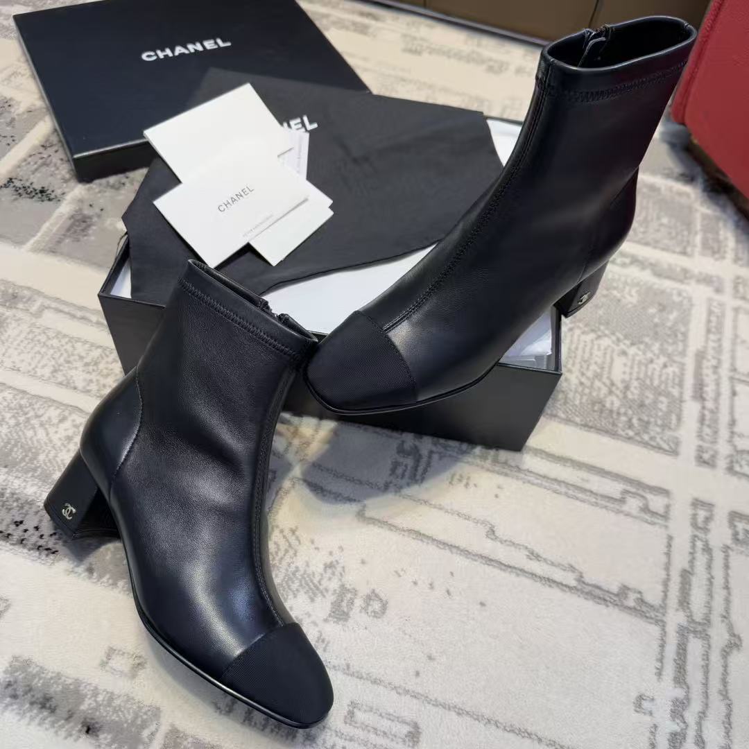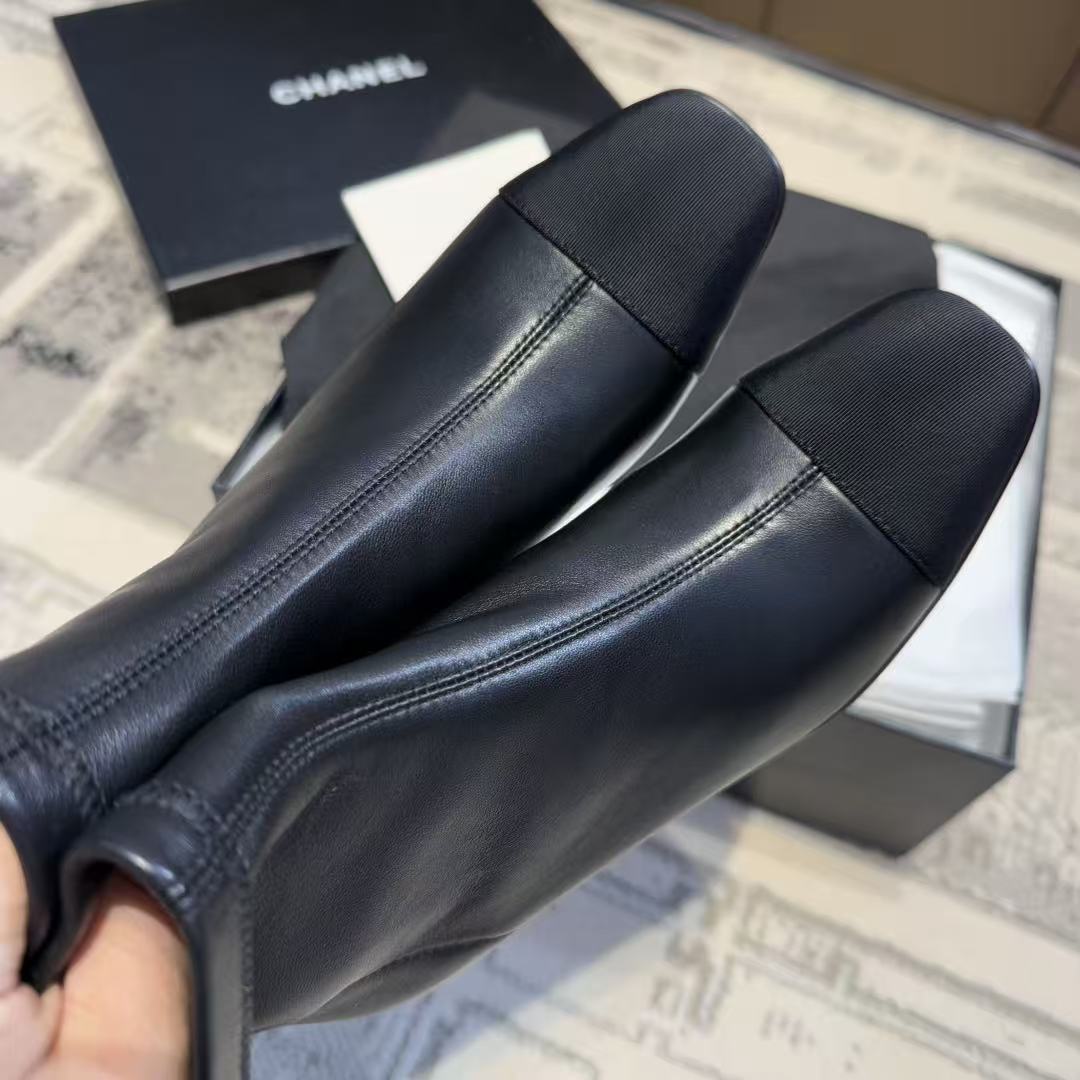 CH香奶奶经典款裸靴,拼接粗跟弹力靴