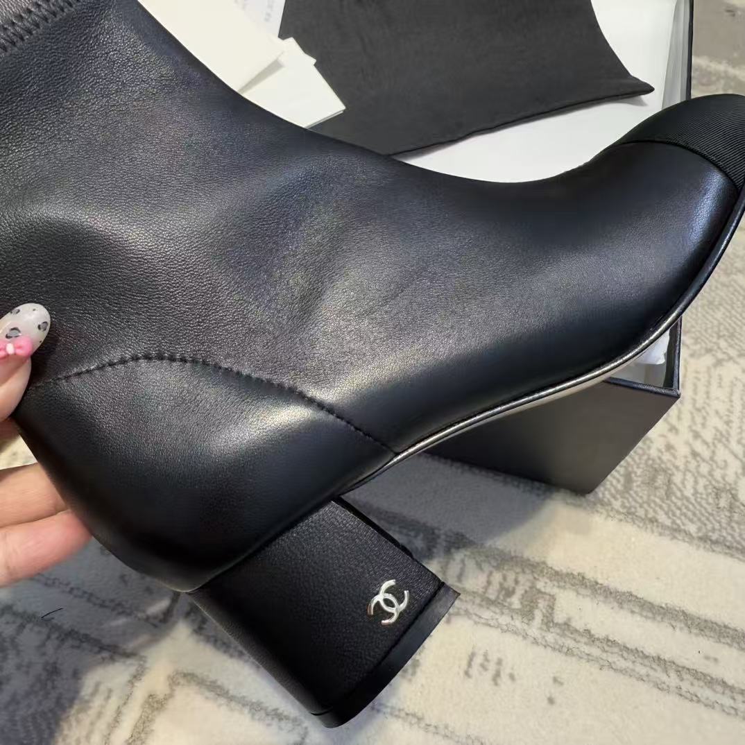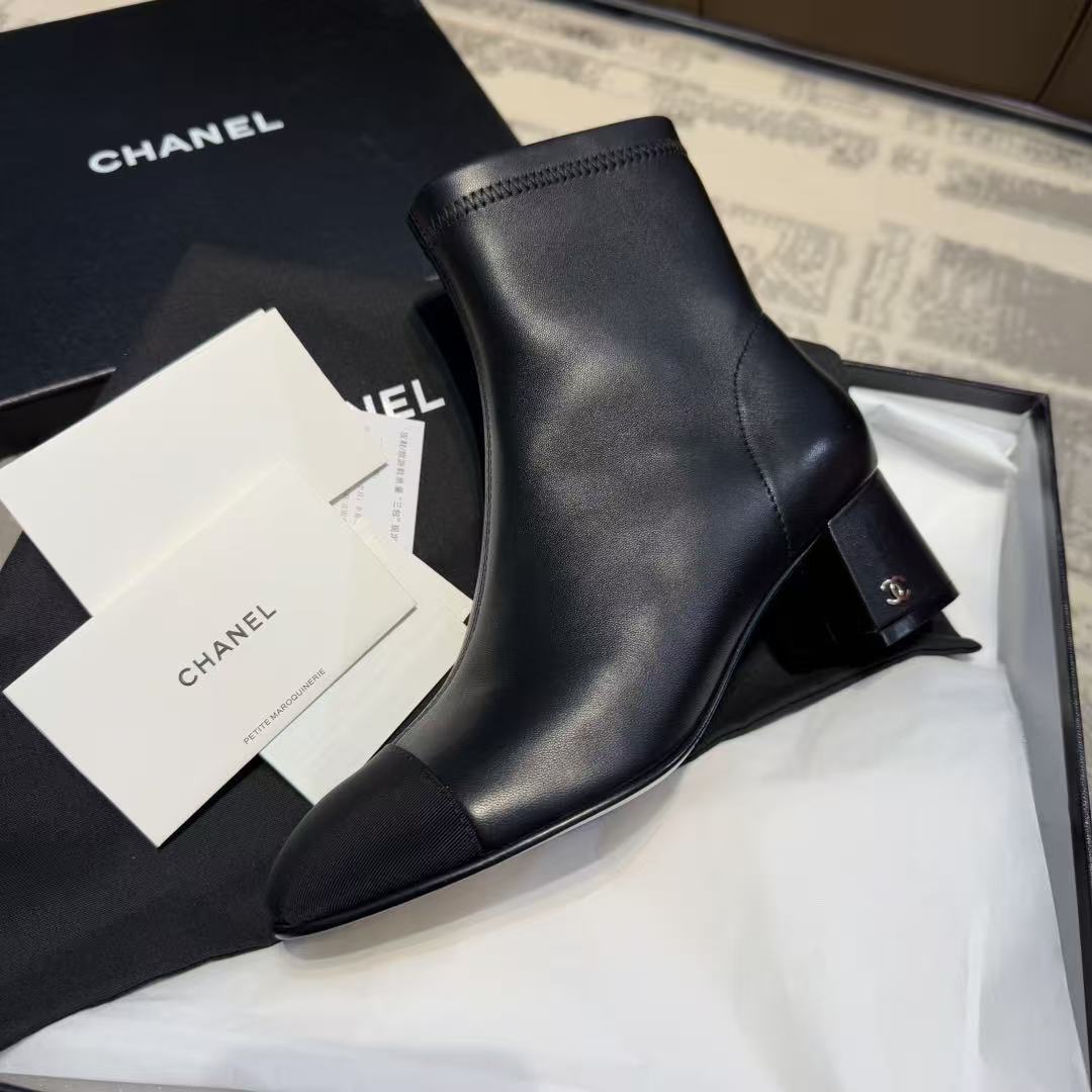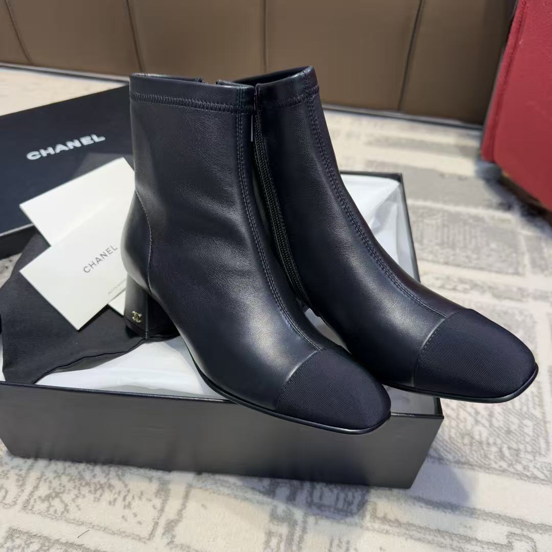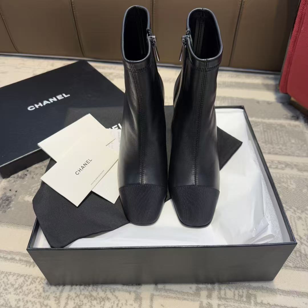 CH香奶奶经典款裸靴,拼接粗跟弹力靴