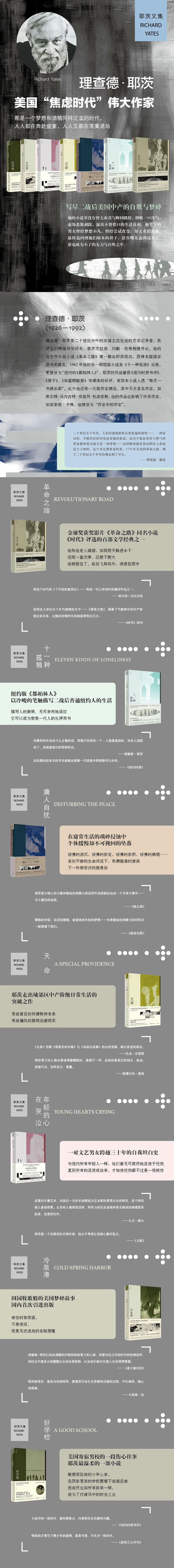 写作的人,比身体活得久一些;耶茨朝自己内心的荒芜处走,走得越深却好像触碰到更多的人。他写庸常生活中的绝望,写得太透了,凭这个就差不多可以不朽。 ——阿乙