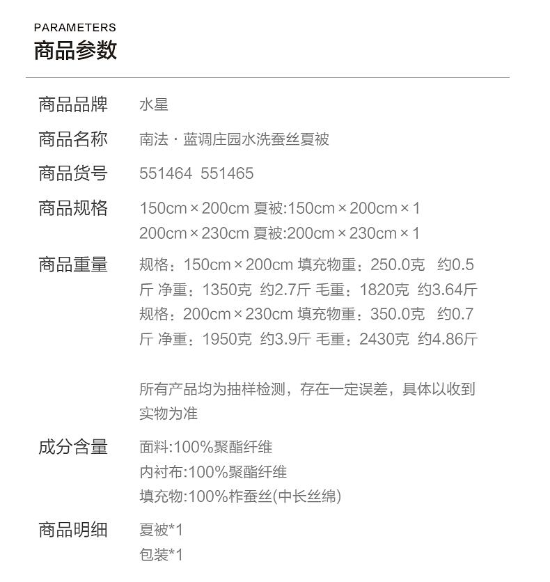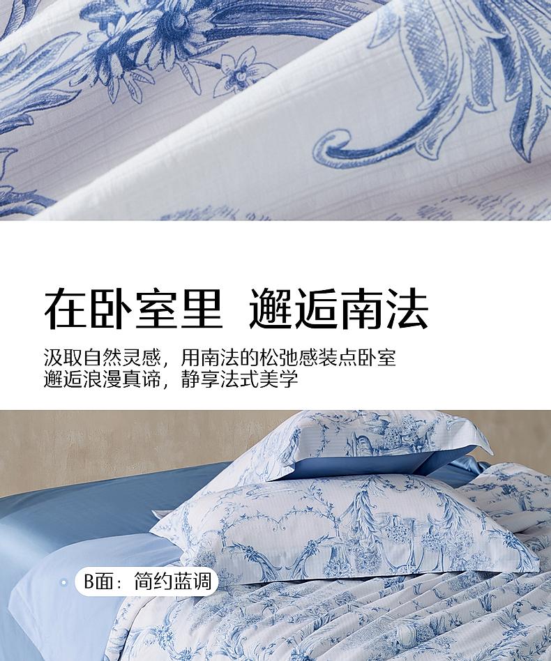 水星家纺 A类抑菌亲肤水洗蚕丝夏被 南法·蓝调庄园床上用品