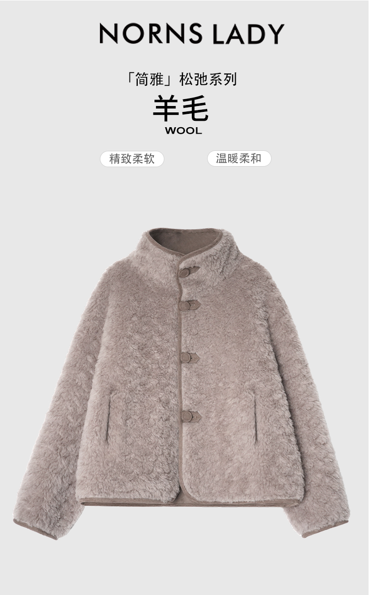 NORNS LADY诺恩 复古加厚羊羔毛双面短款立领盘扣外套 H25WK86922 -12.16直播