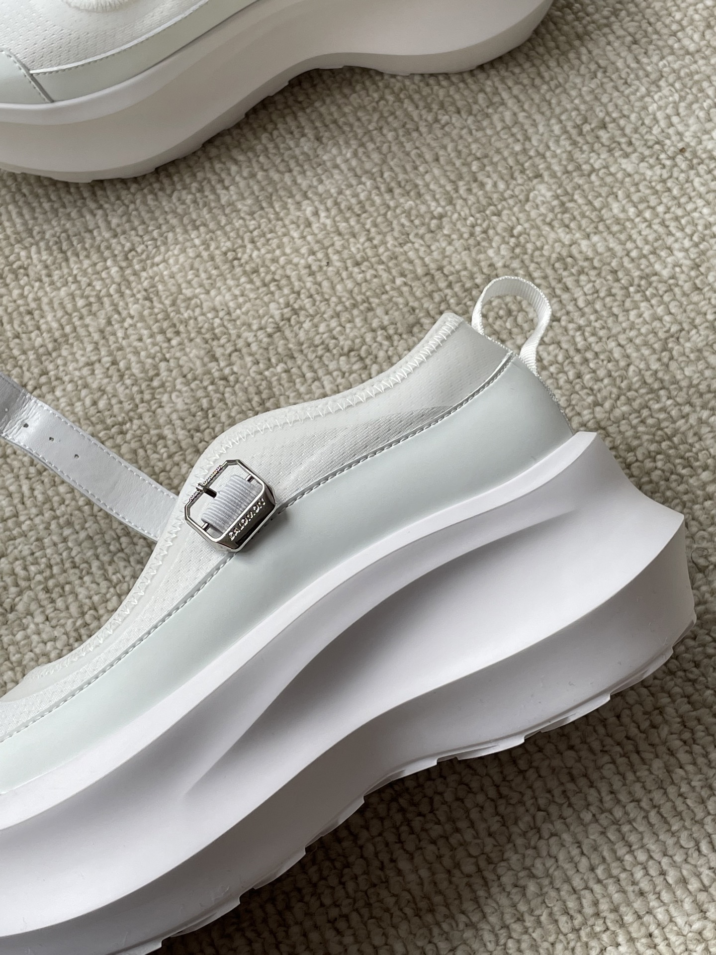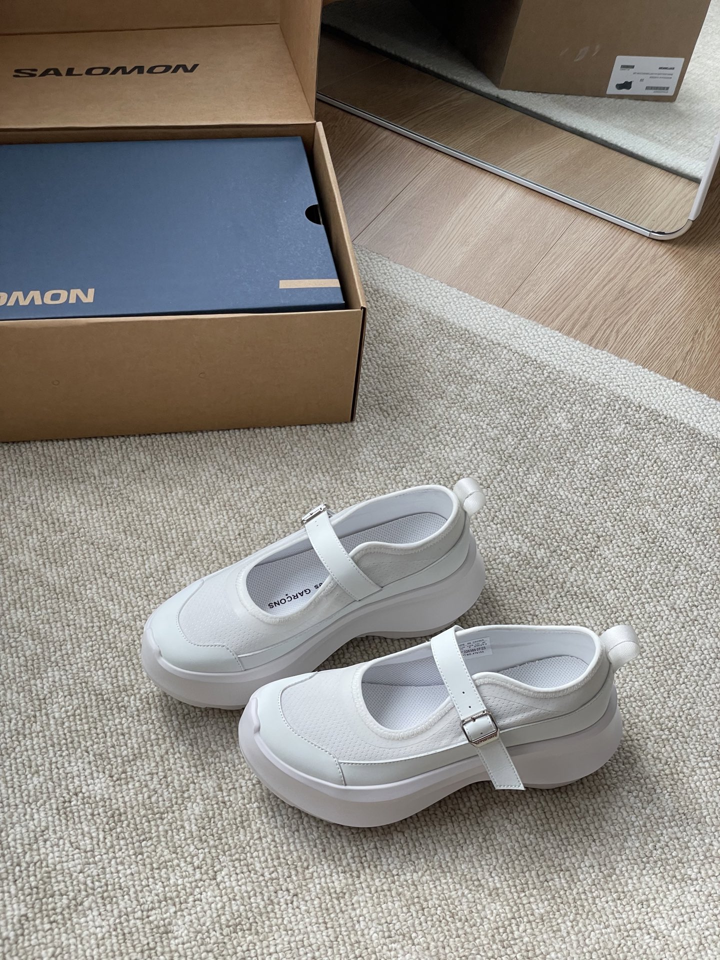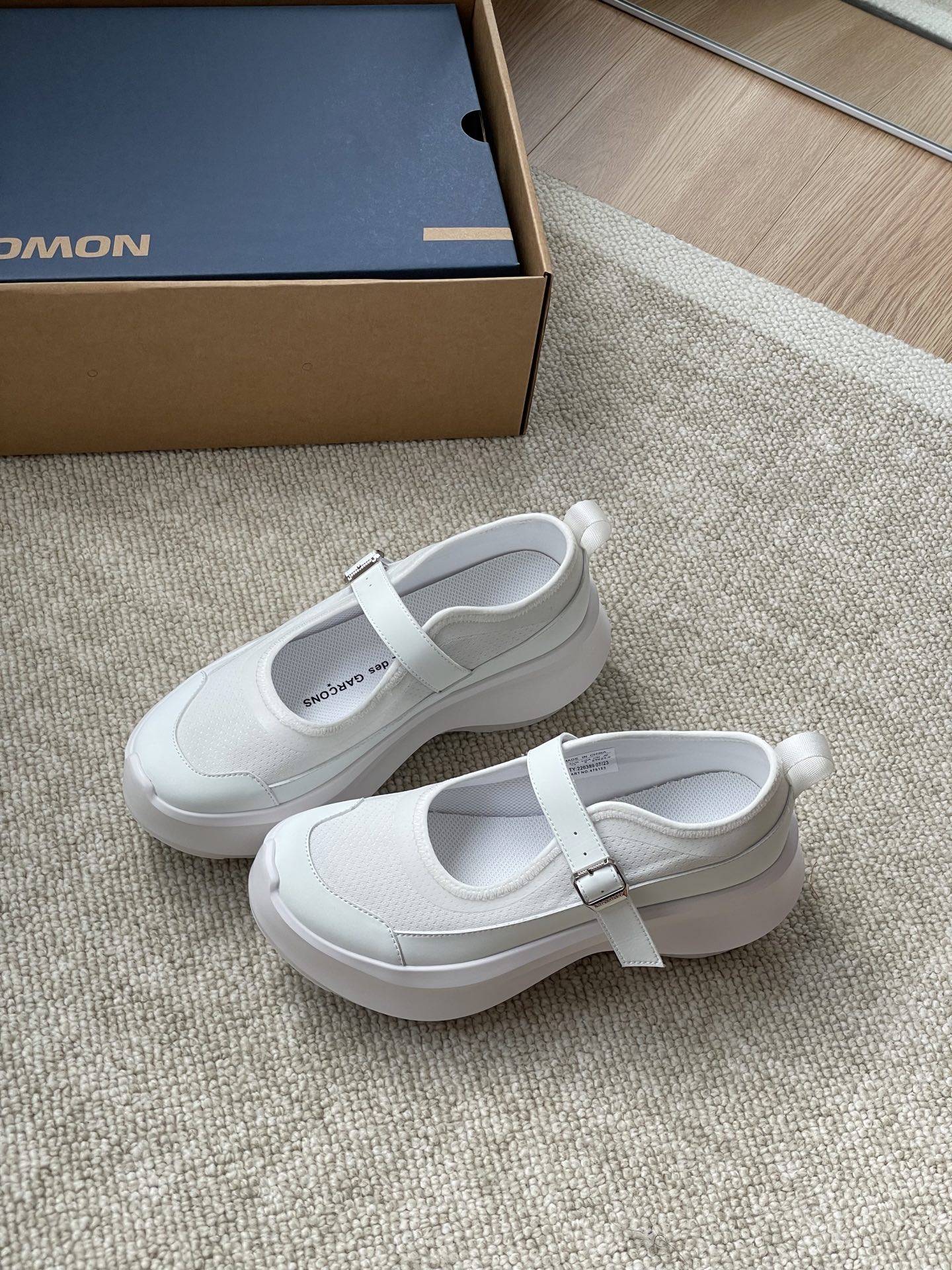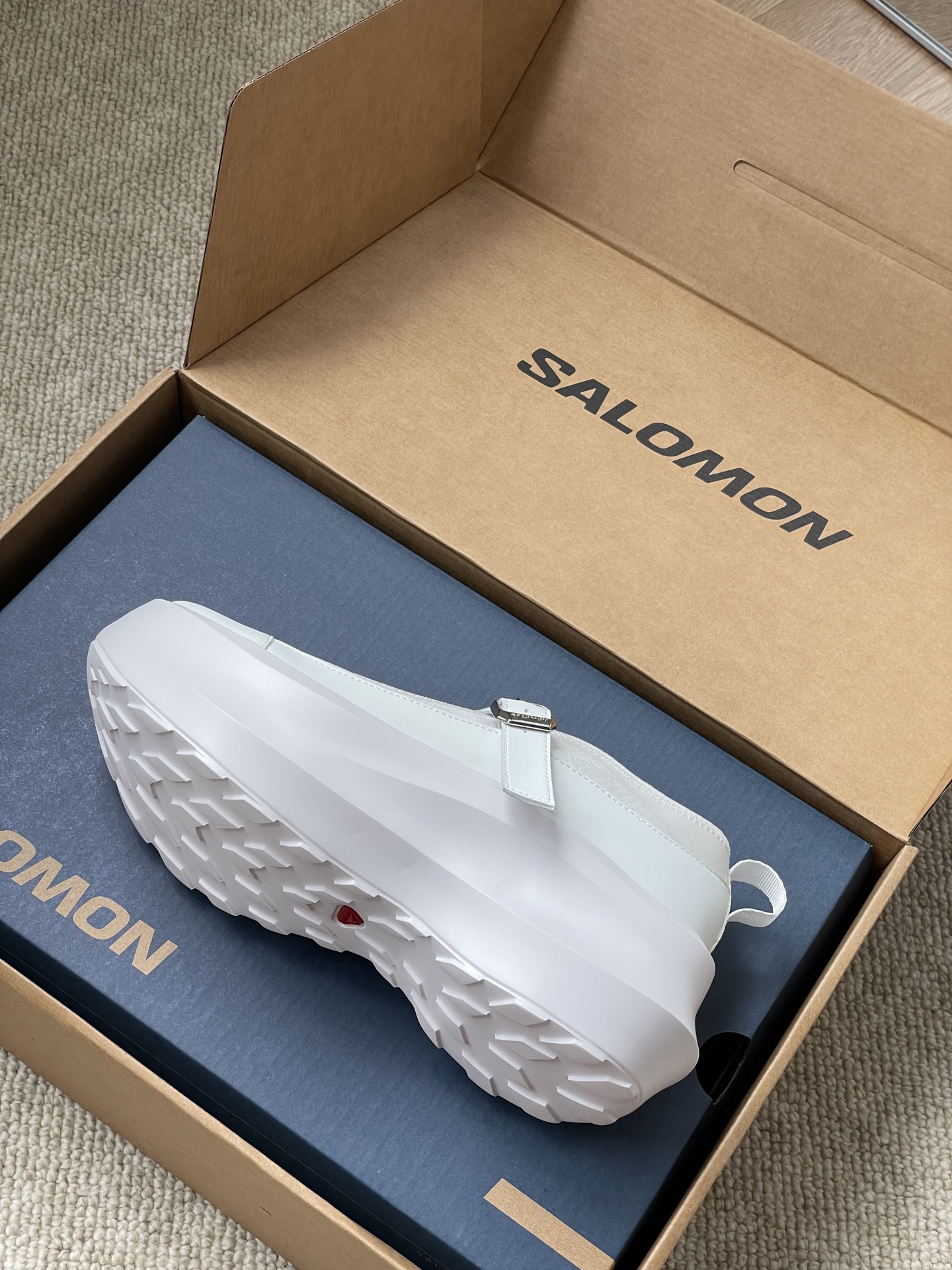 撒落马丽珍鞋 最新salomon x 川久六代厚底玛丽珍,6cm增高,瞬间秒变大长腿,夏季推荐买白色 好搭配 且清爽!! 夏日气息的萨洛蒙! 长在心坎上的厚底玛丽珍!!! 确实是太可爱了呀。 材质: 原版定制进口科技面料+透气网内里+原版开模超轻发泡材质,并饰有网眼 抗撕裂材质鞋面、防水胶条!! 尺码:35 36 37 38 39 40