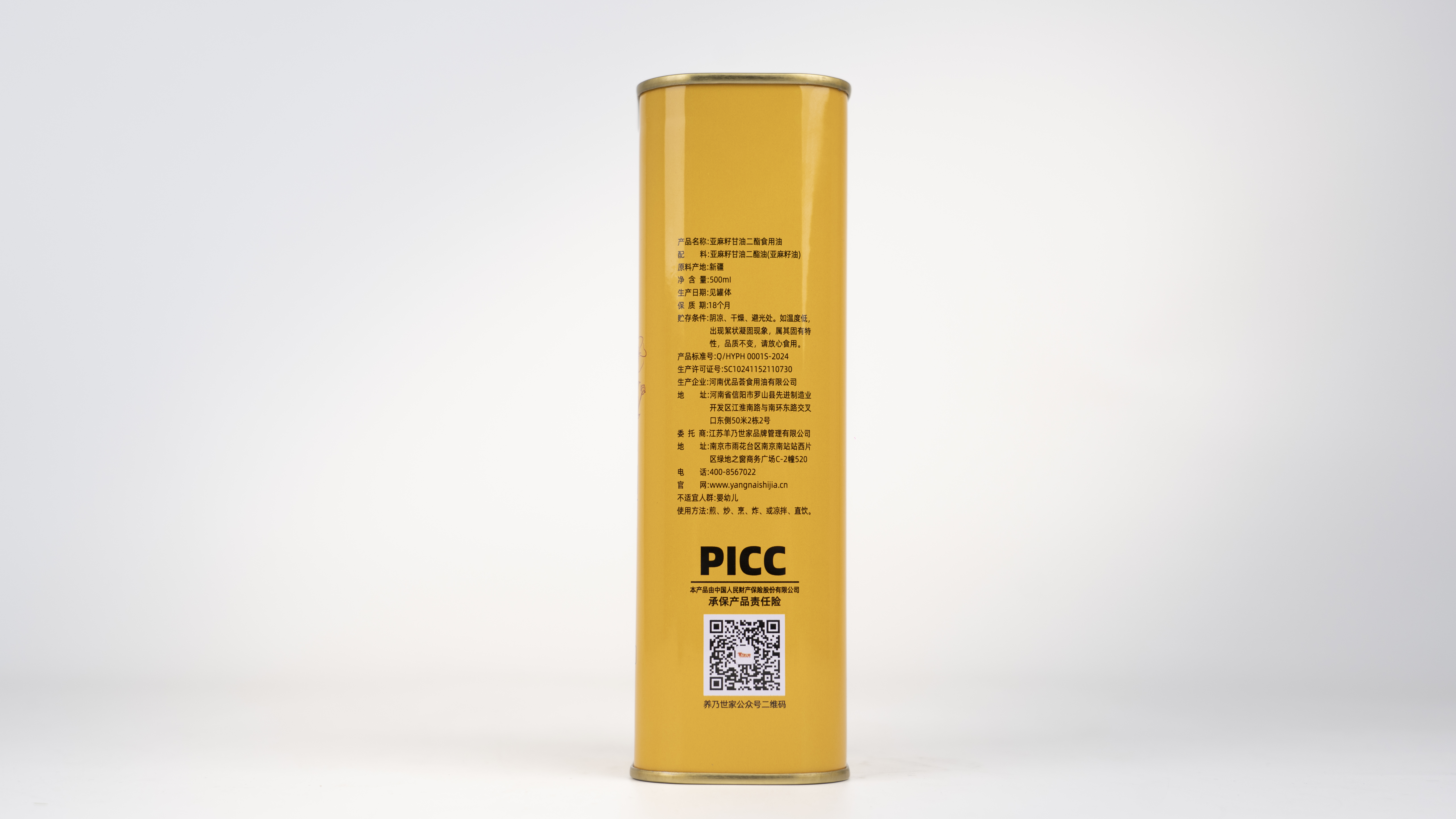 产品名称:养乃世家亚麻籽甘油二酯食用油