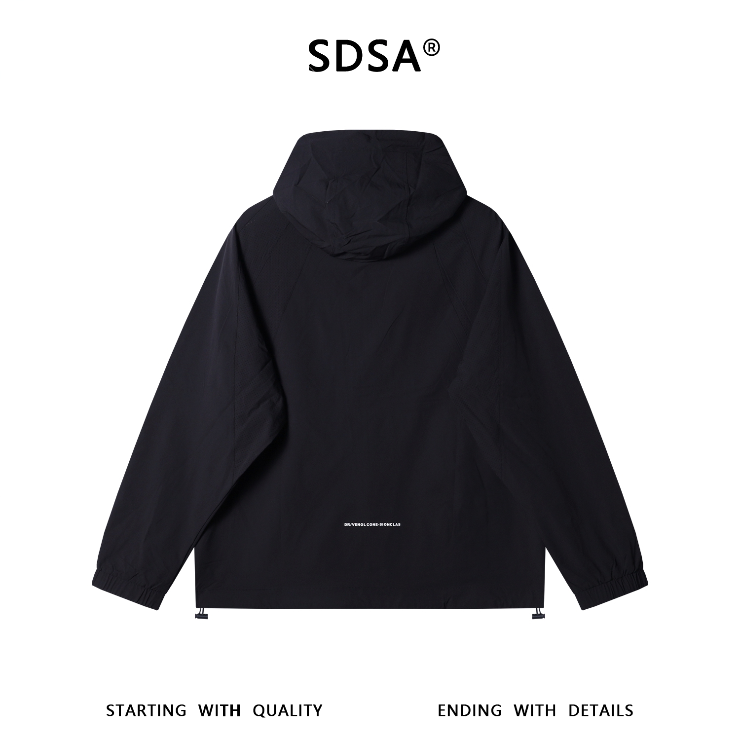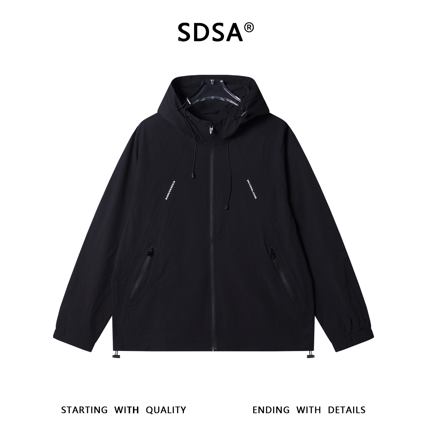 SDSA男装2026新款高贵轻奢纯色下摆松紧设计拉链立领连帽夹克百搭