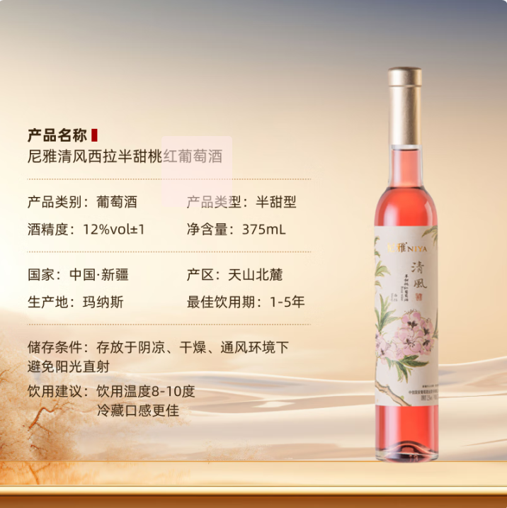 尼雅 清凉贵人香 甜白葡萄酒 375ml
