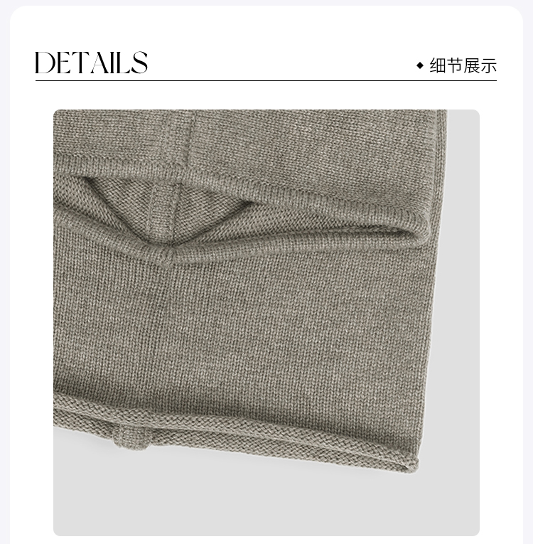 ROMI STUDIO“简约百搭”羊绒桑蚕丝连帽围脖迷雾绿拉法帽 23AWM332