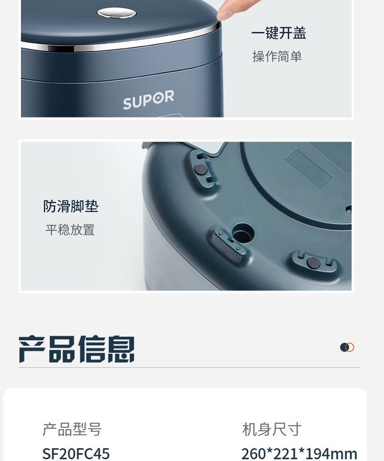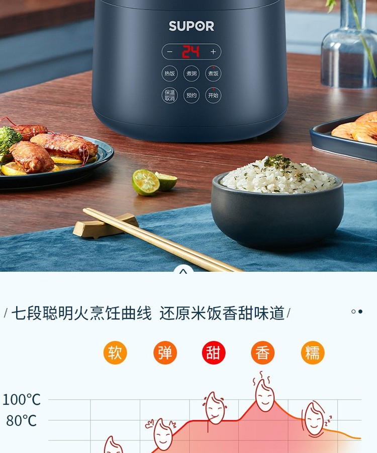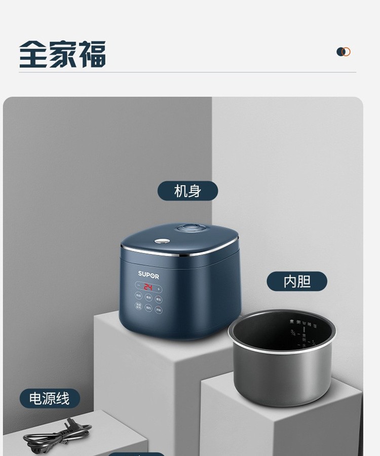 苏泊尔(SUPOR)电饭煲2L小型2-3人家用多功能不粘小容量宿舍单人煮粥热饭电饭锅智能预约小功率 SF20FC45