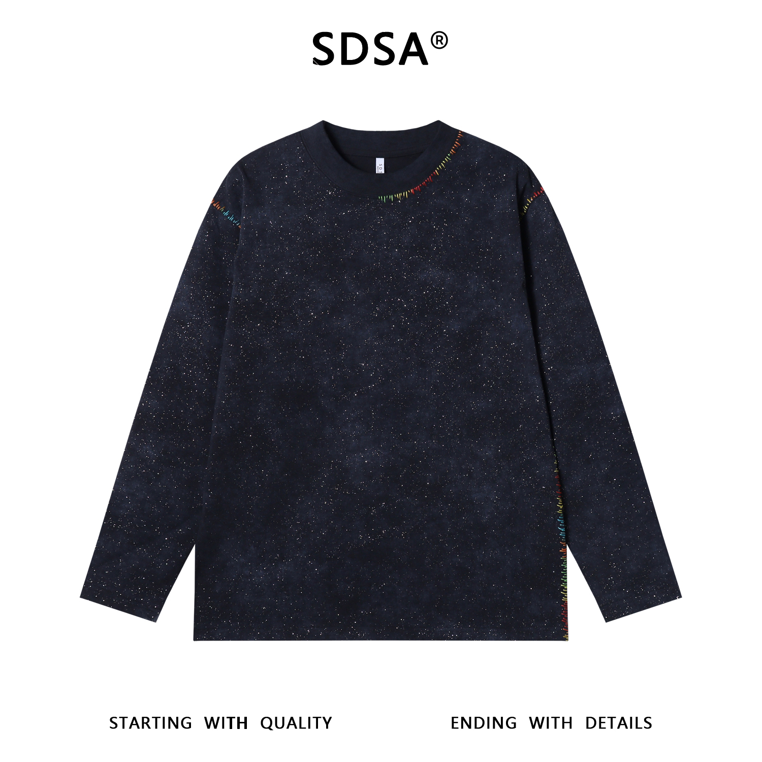 T4811SDSA男士秋冬新款痞帅男装设计师彩色缝线满天星圆领长袖T恤百搭