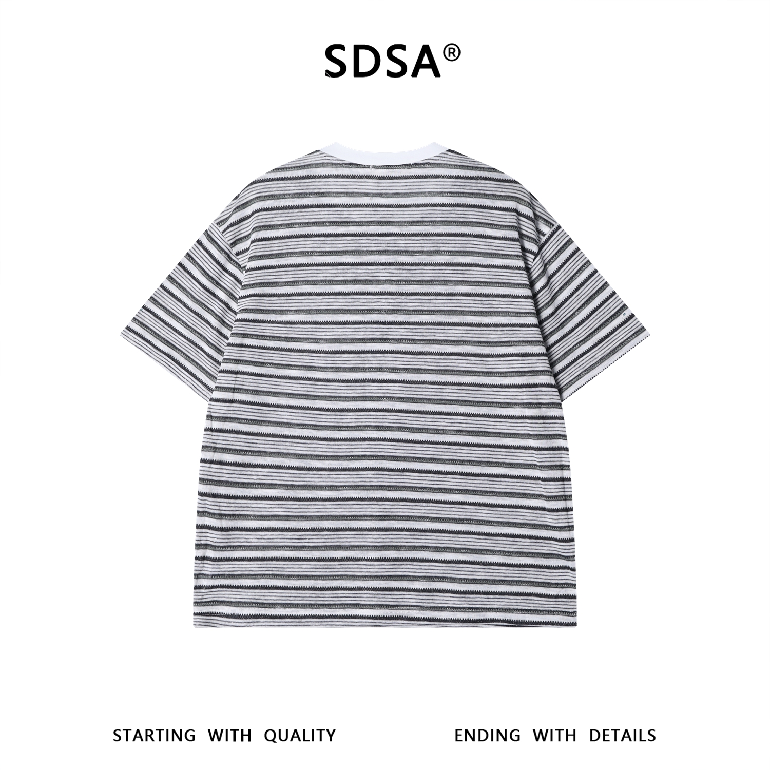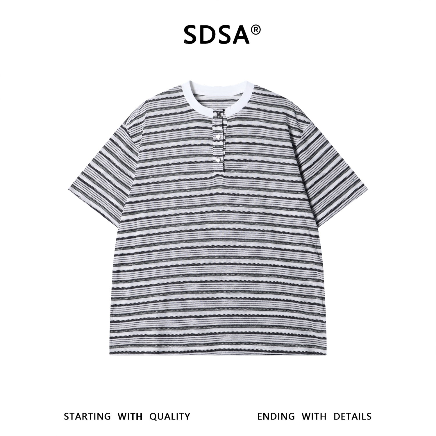 SDSA男装2026新款高贵轻奢美式撞色条纹半纽扣设计短袖T恤百搭潮
