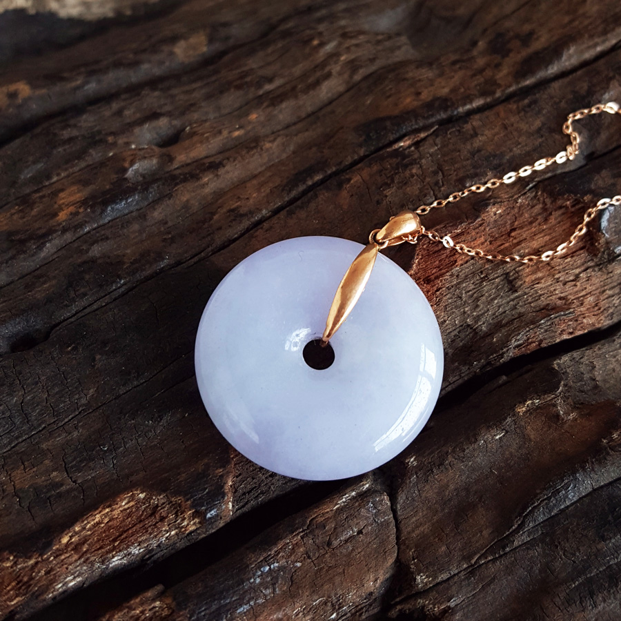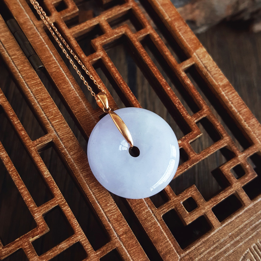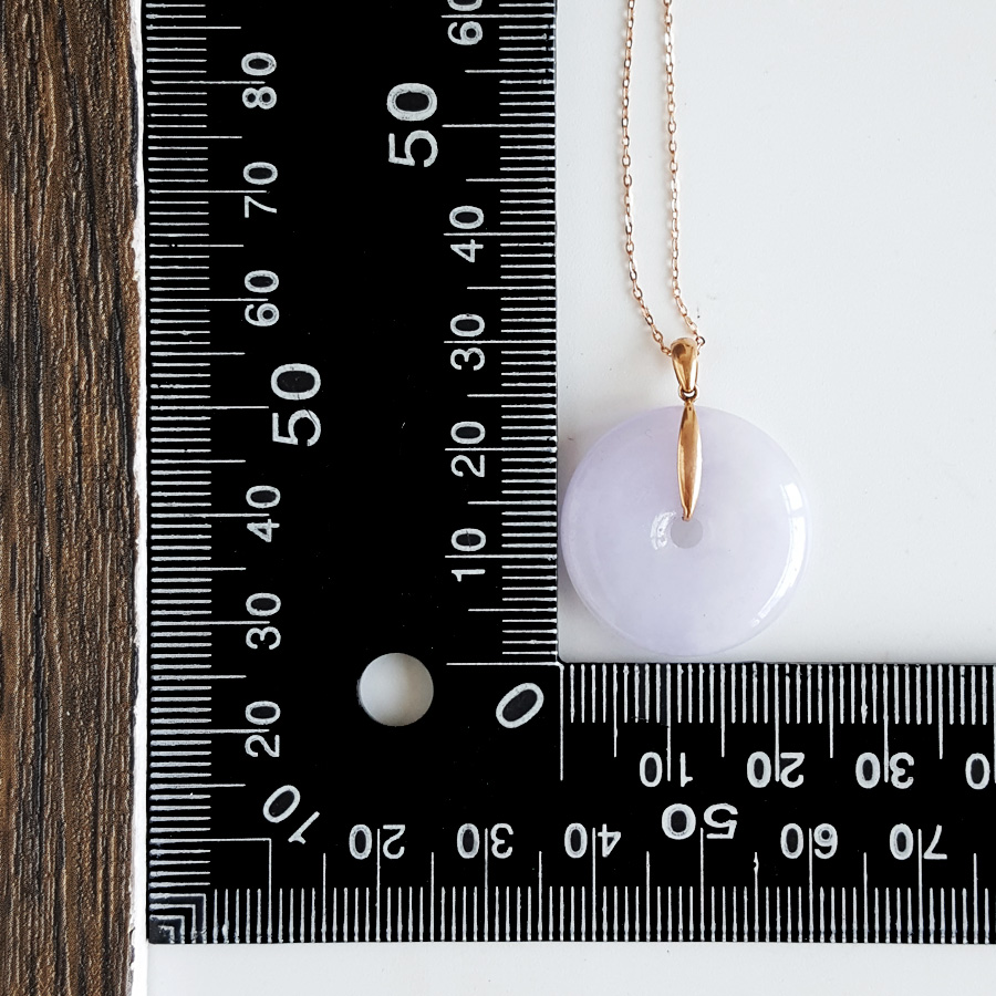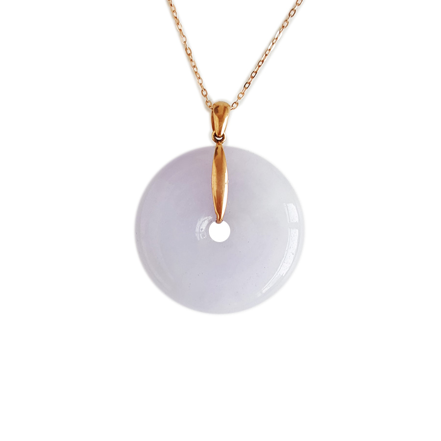名称 | AU750玫瑰金镶天然细腻糯种紫罗兰平安扣翡翠吊坠项链 |