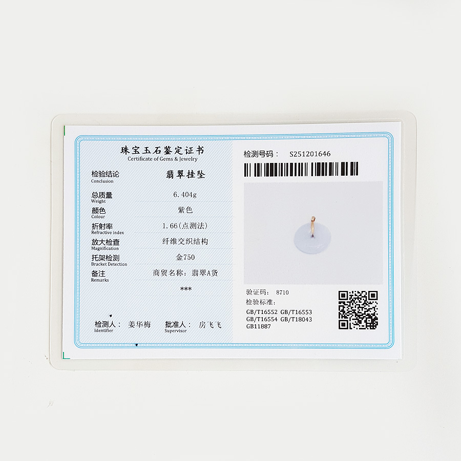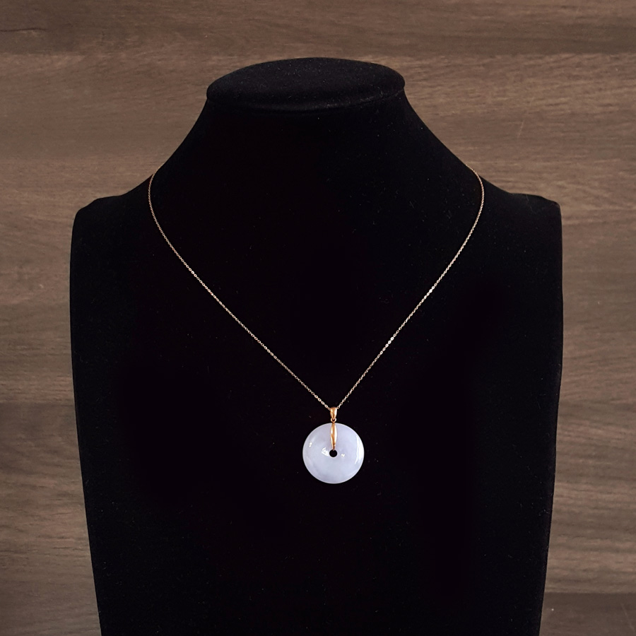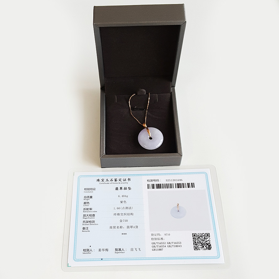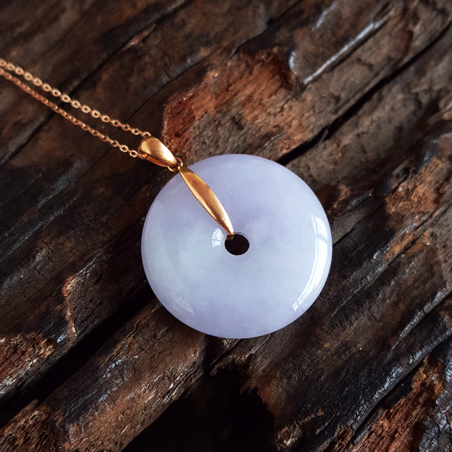 名称 | AU750玫瑰金镶天然细腻糯种紫罗兰平安扣翡翠吊坠项链 |