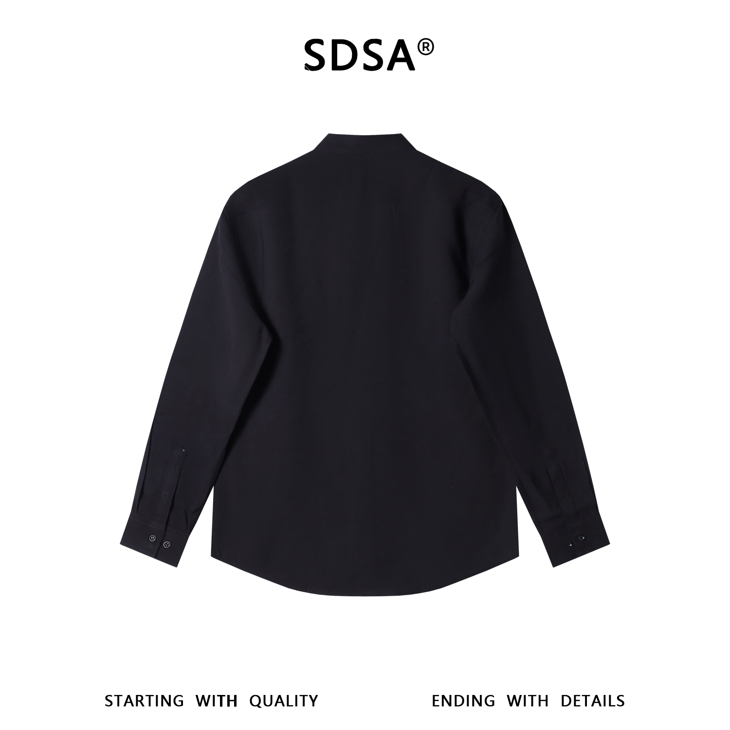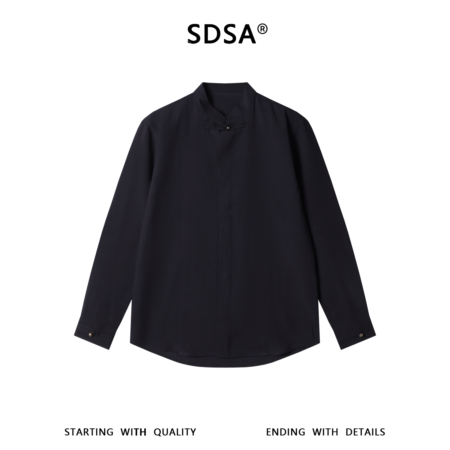 SDSA男装2026新款高贵轻奢新中式简约纯色盘扣立领衬衫百搭舒适