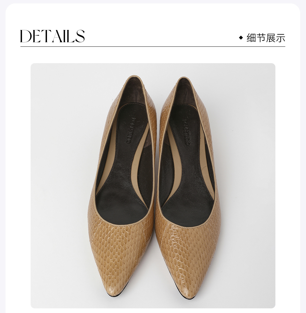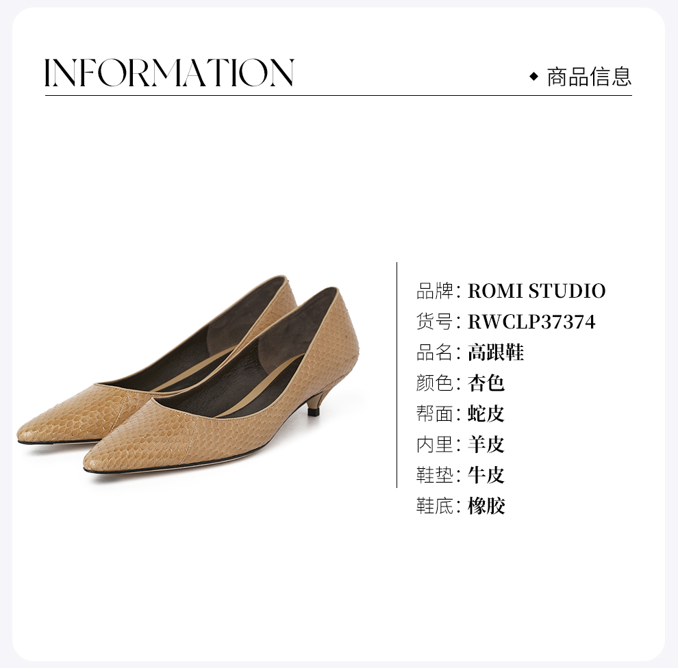 ROMI STUDIO蛇皮羊皮轻薄光泽气质小猫跟尖头高跟鞋RWCLP37374