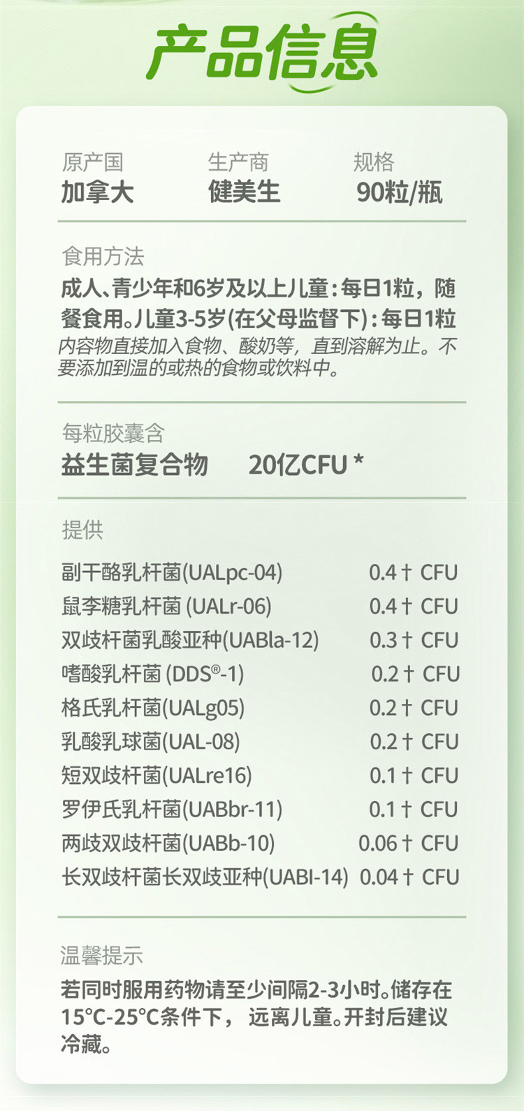 【分销】Jamieson健美生益生菌胶囊90粒20亿活性益生菌