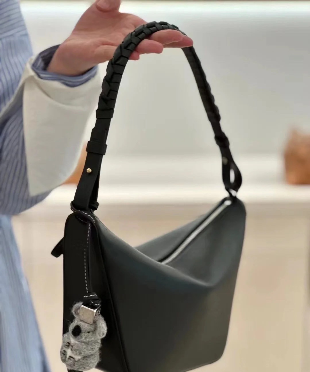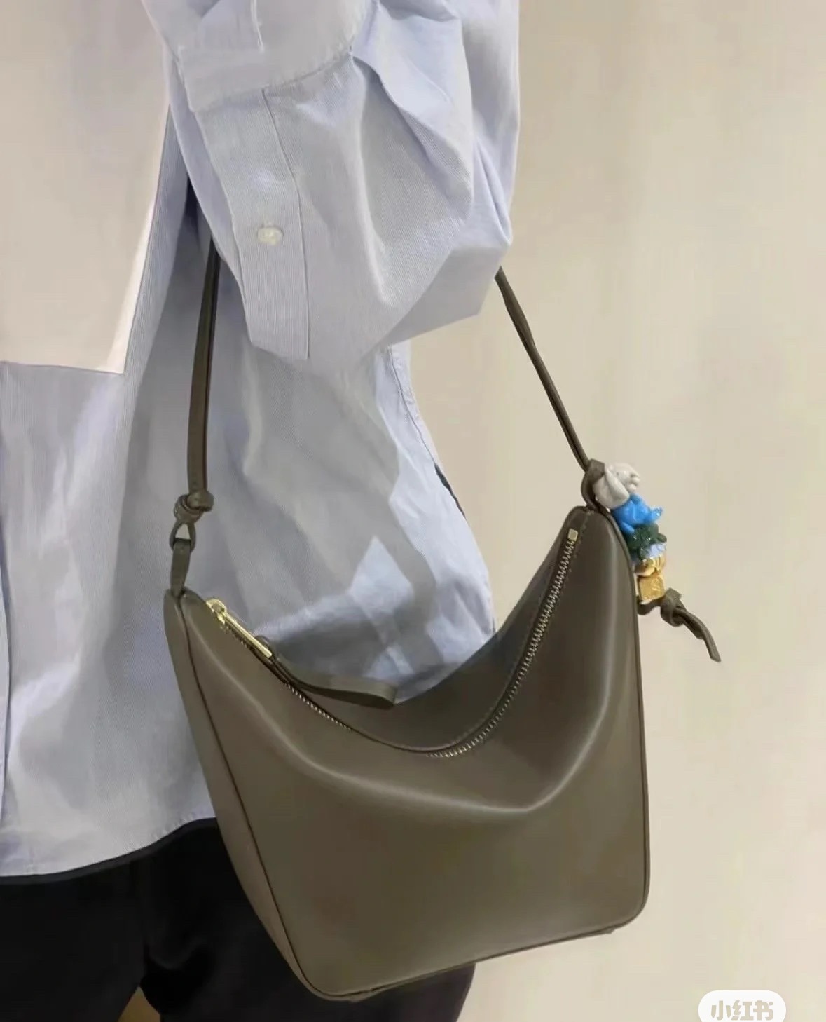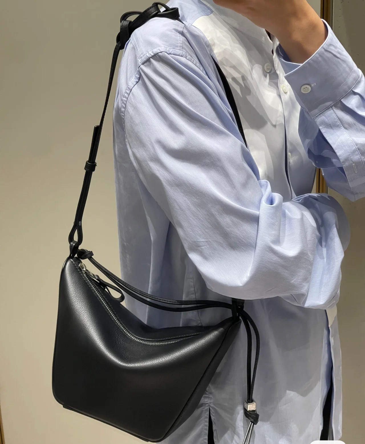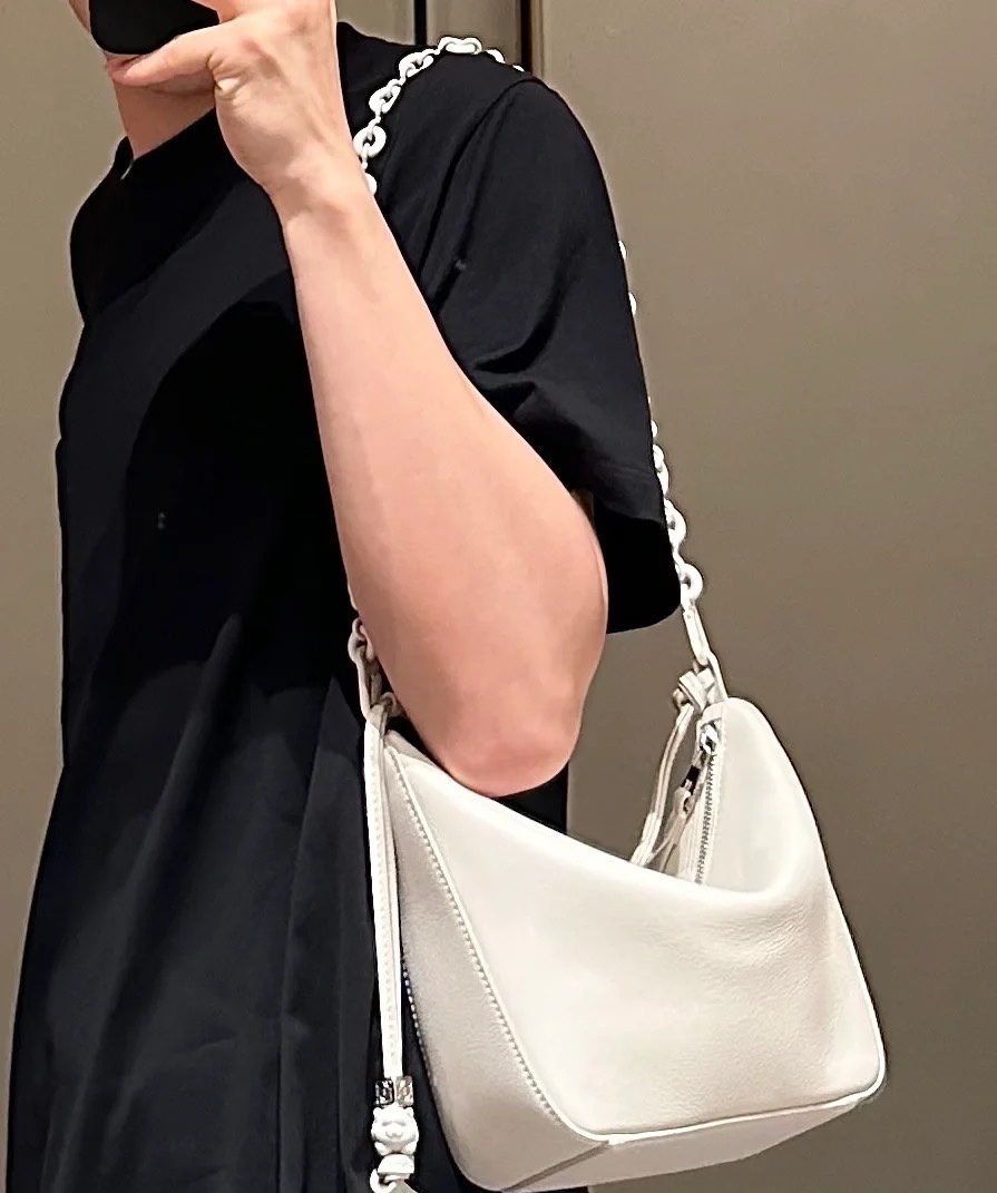 LO℮w* 🌟经典牛皮革Hammock hobo手袋 将经典手袋能轻松改变形状的设计进行解构,保留颇具代表性的吊床造型,打造出一款时尚百搭且符合人体工学的hobo手袋.此迷你版本采用经典牛皮革制成,打结牛皮革带子可进行个性化设计。*可肩背、斜背或手提*拉链开合*牛皮革拉链头*骰子🎲挂饰*人字纹棉质帆布衬里*