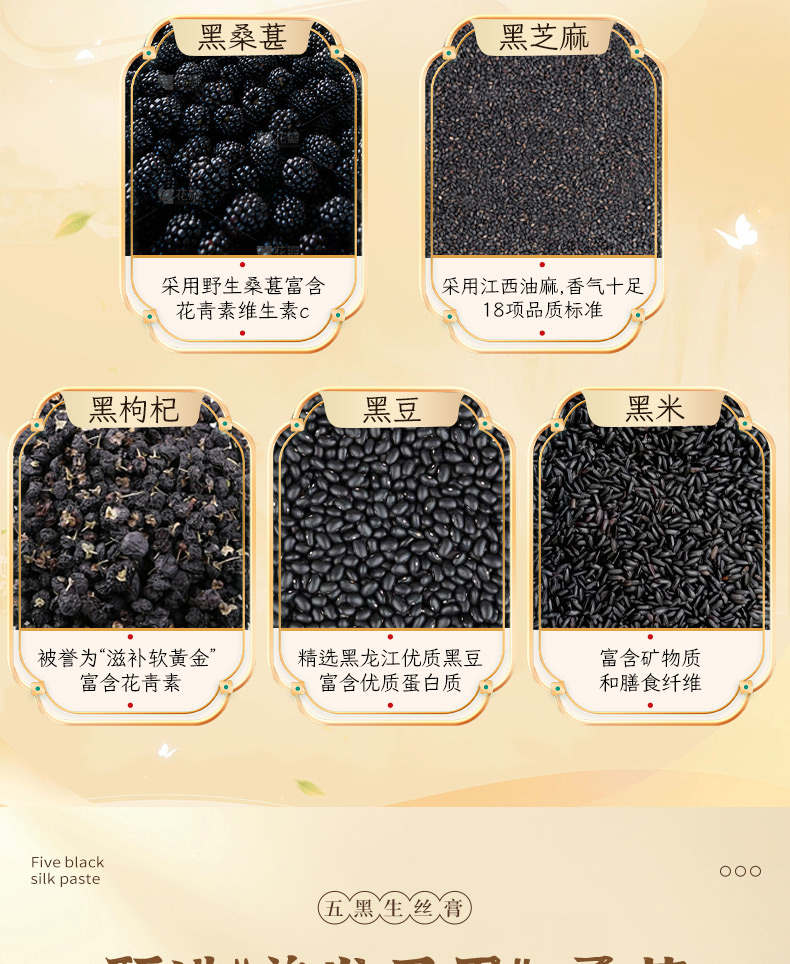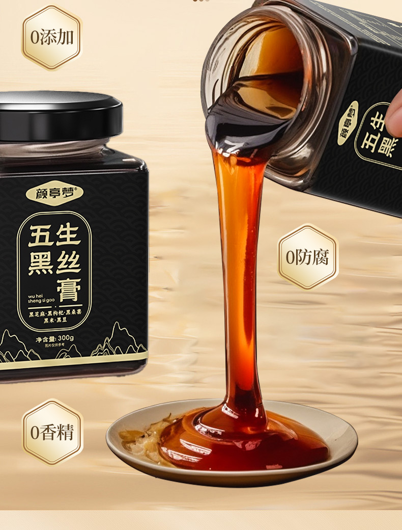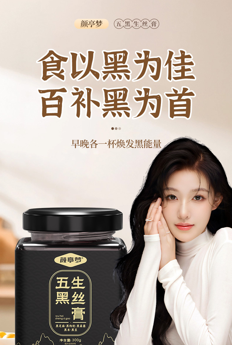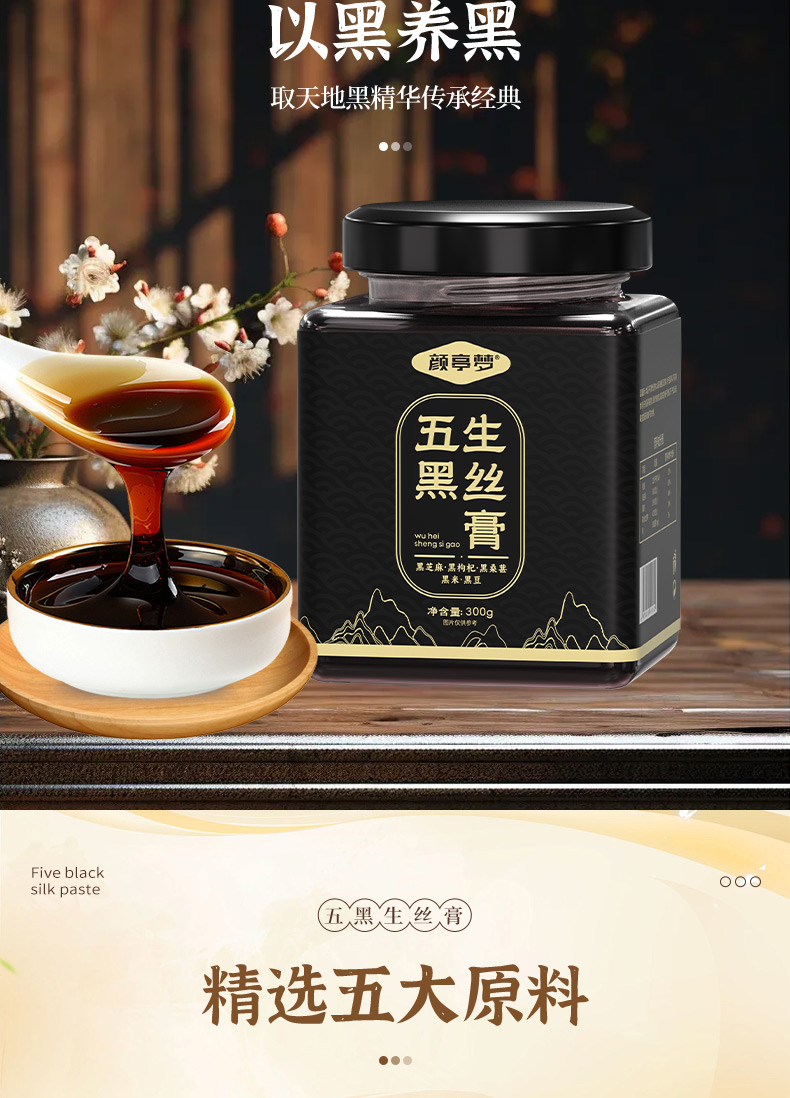 颜亭梦五黑生丝膏茶黑枸杞黑桑葚椹黑芝麻黑米生内调乌密养发