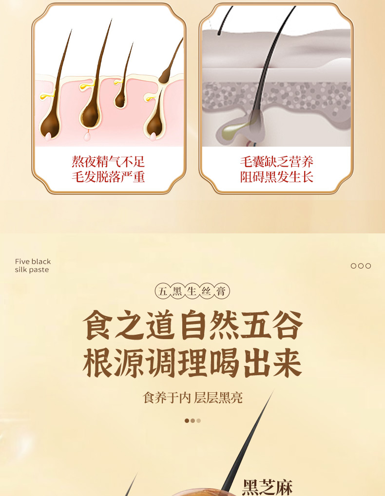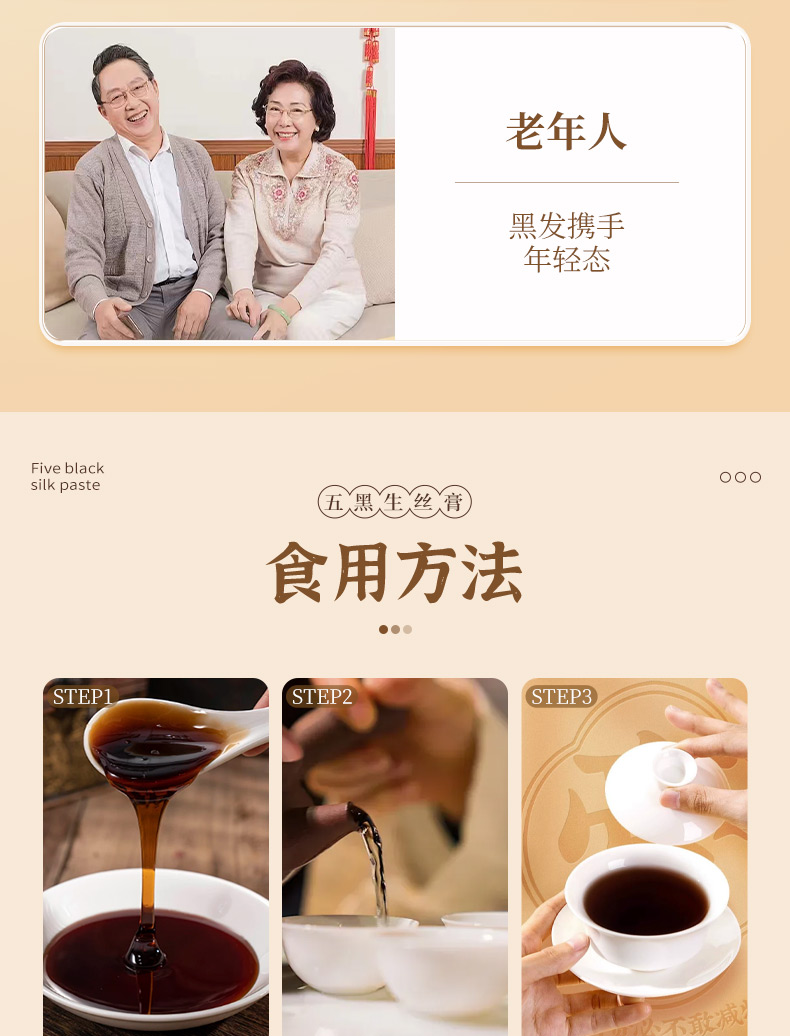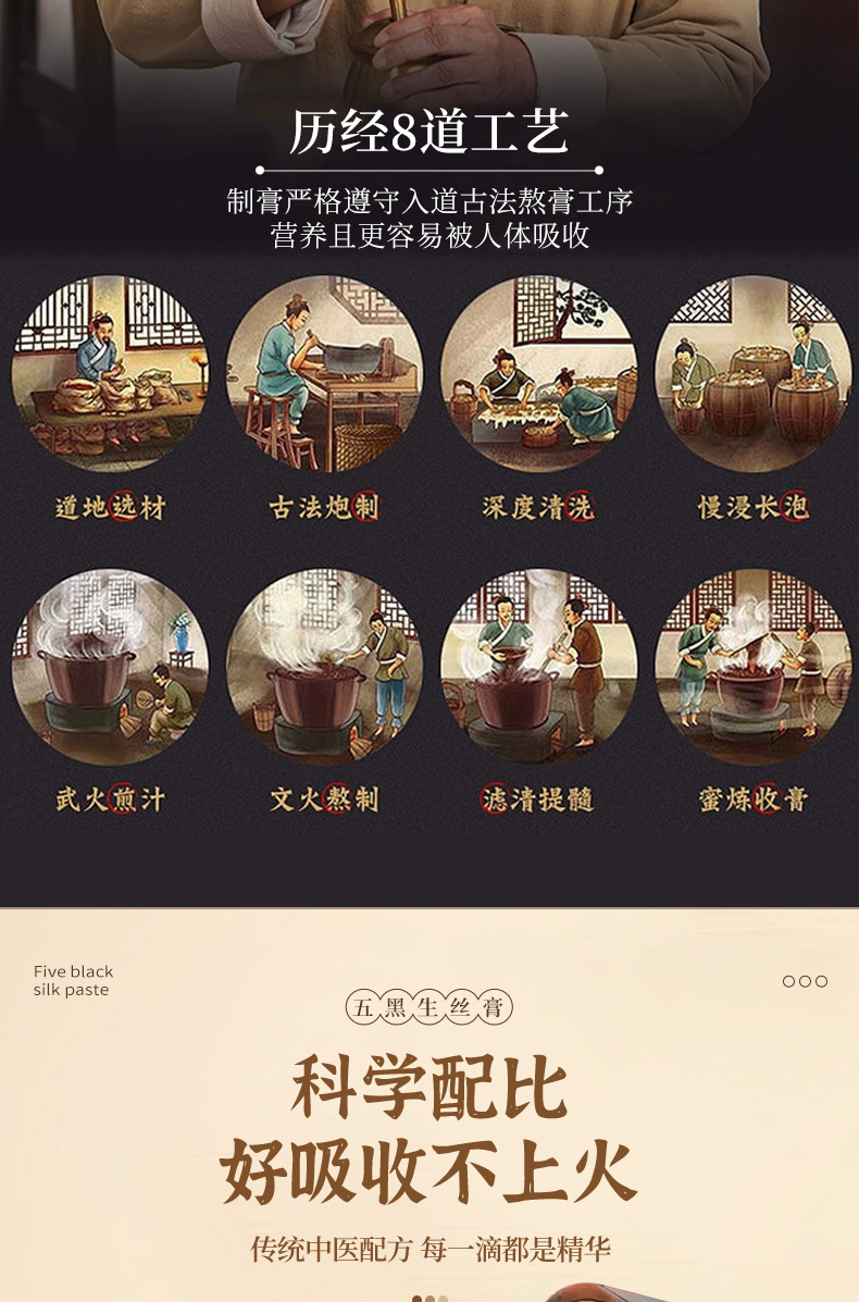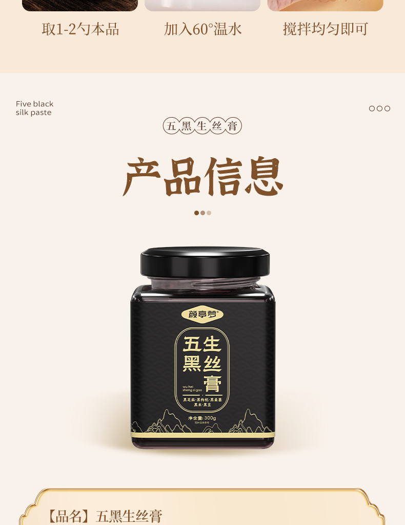 颜亭梦五黑生丝膏茶黑枸杞黑桑葚椹黑芝麻黑米生内调乌密养发