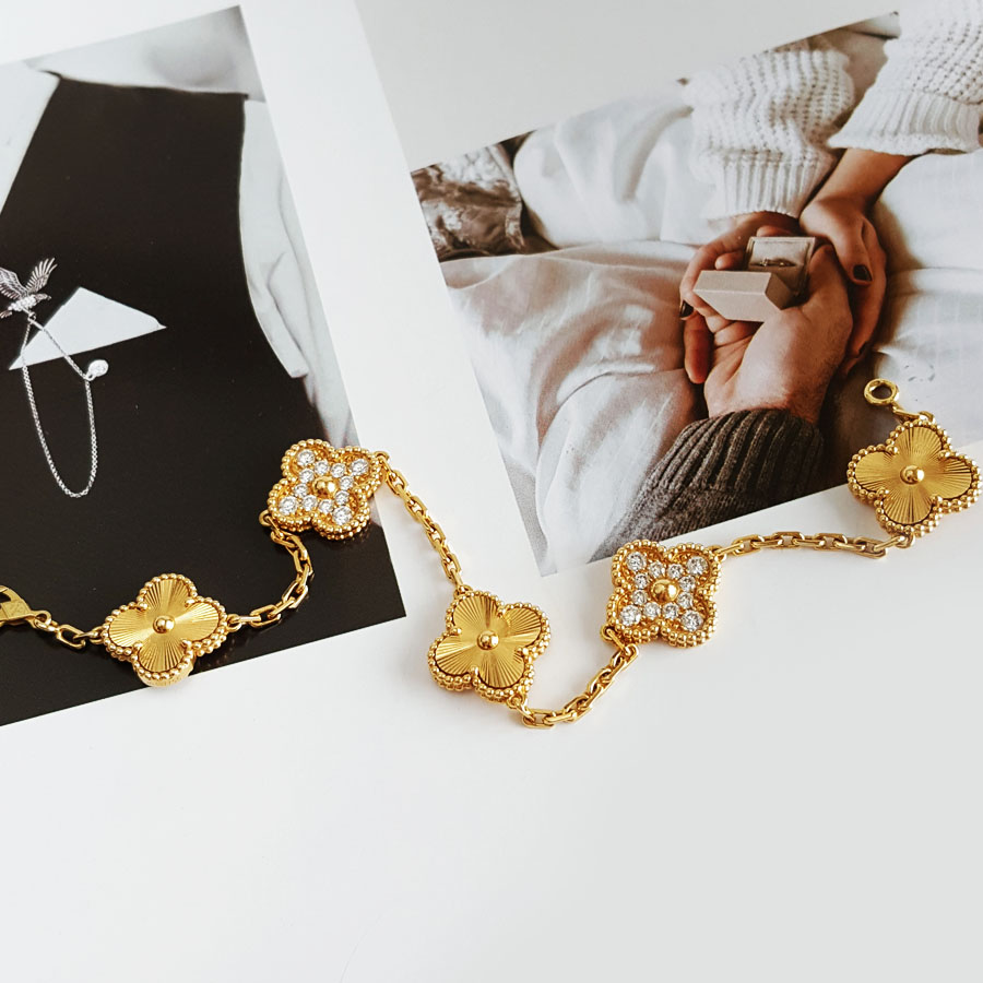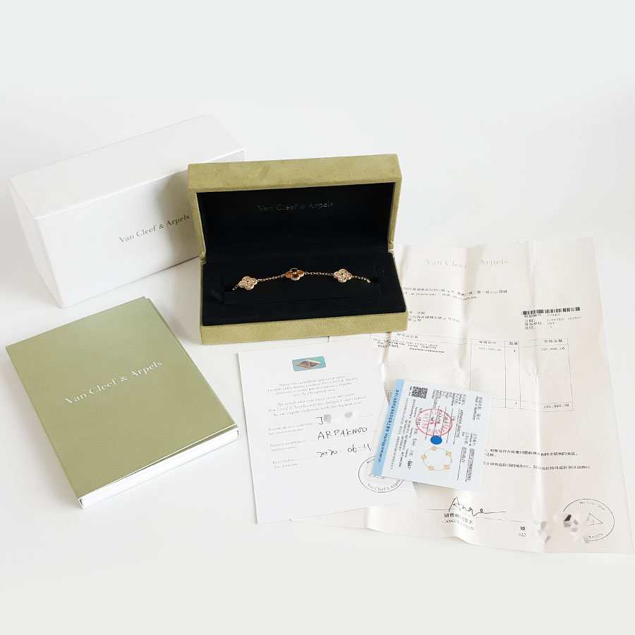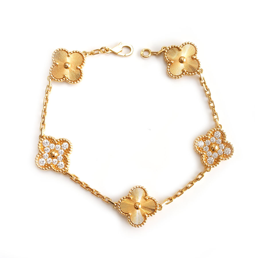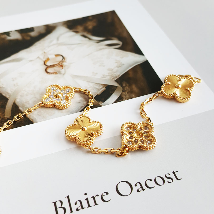 【95新】VCA梵克雅宝Vintage Alhambra系列VCARP4KN00 18K黄金镭射镶钻五花手链女士现售价:82300!080825TB14