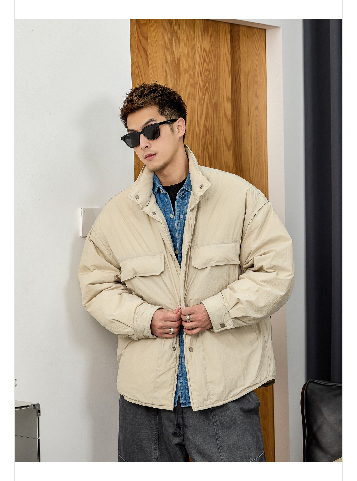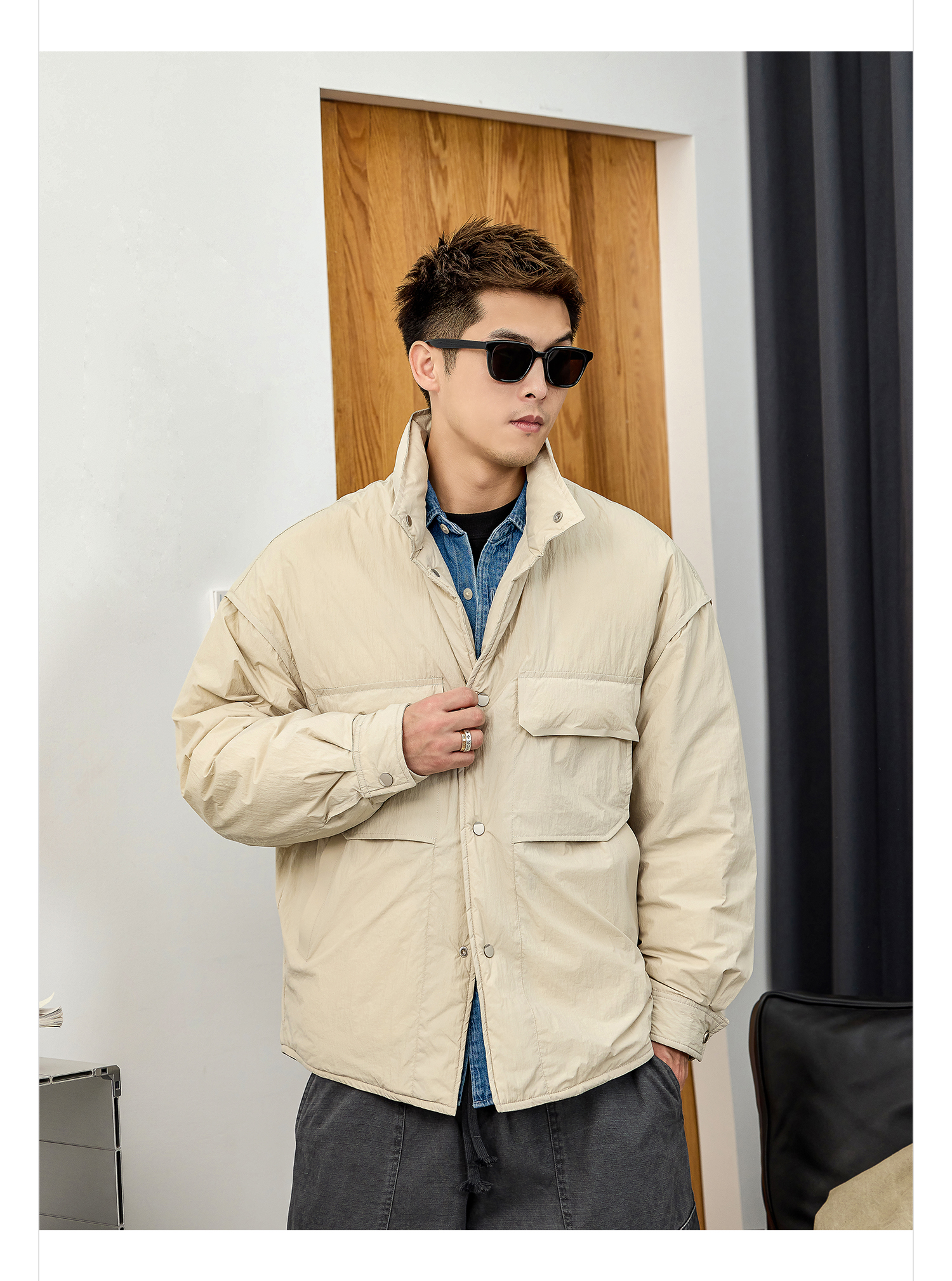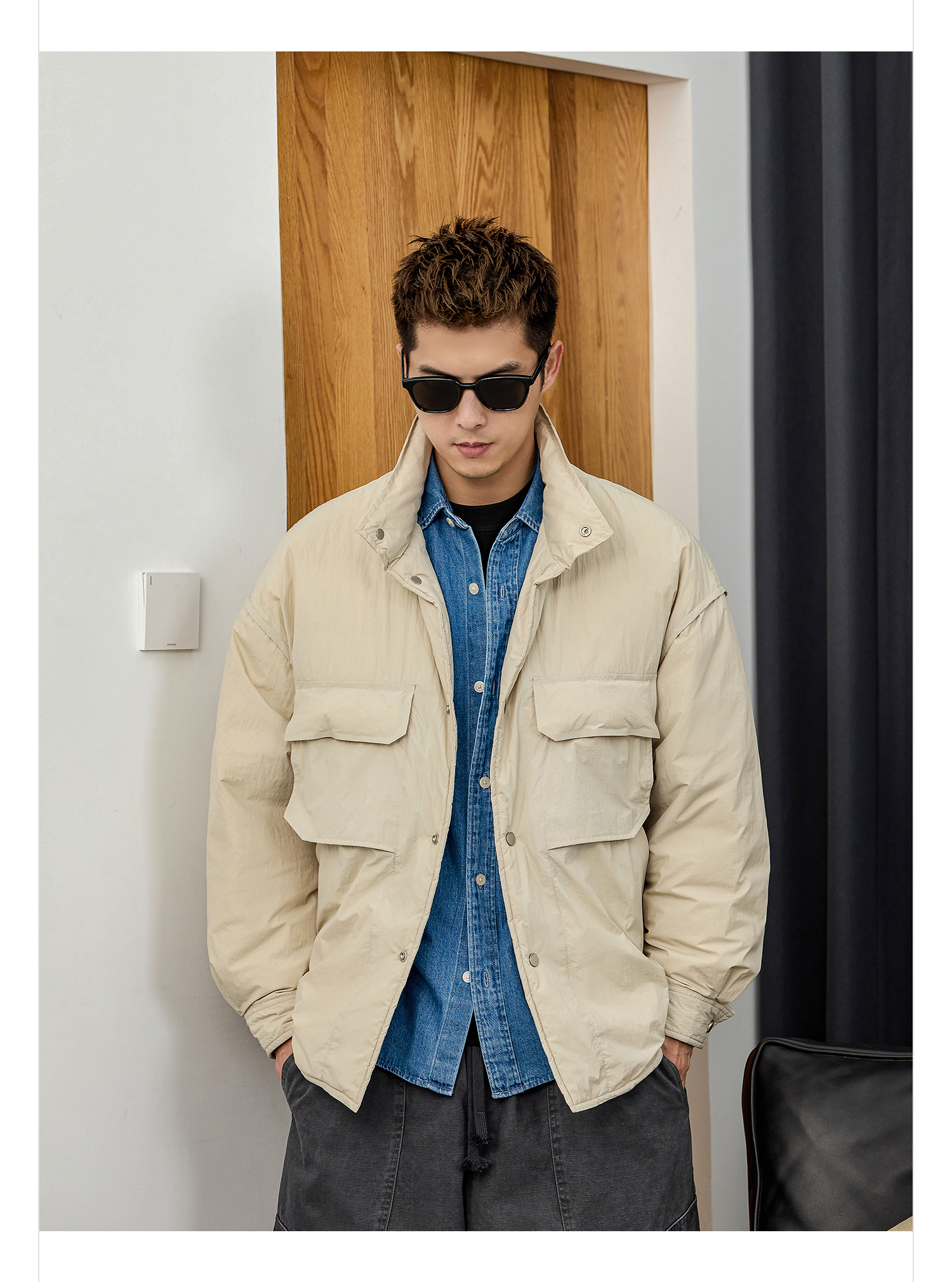 徐太浪【拼接口袋 白鸭绒】大码羽绒服男冬季厚款保暖防寒服外套