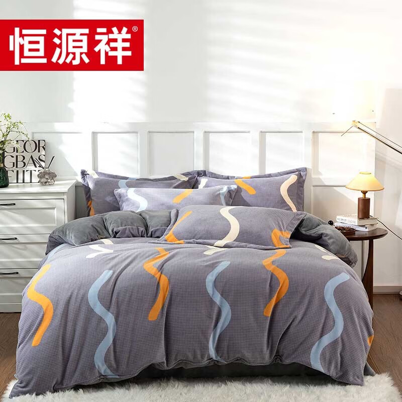 恒源祥礼业TBK2062布兰迪贝贝绒四件套加绒秋冬套件 布兰迪 1.5m(200*230cm)