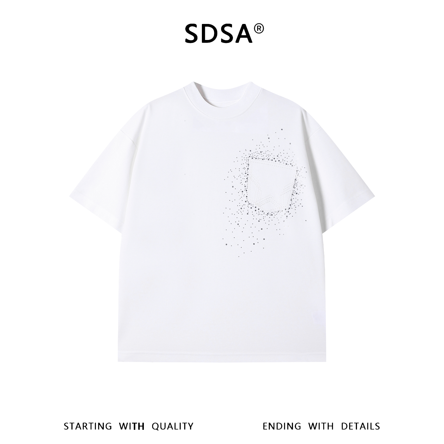 SDSA男装2026新款高贵轻奢潮牌重工烫钻设计圆领短袖T恤百搭上衣