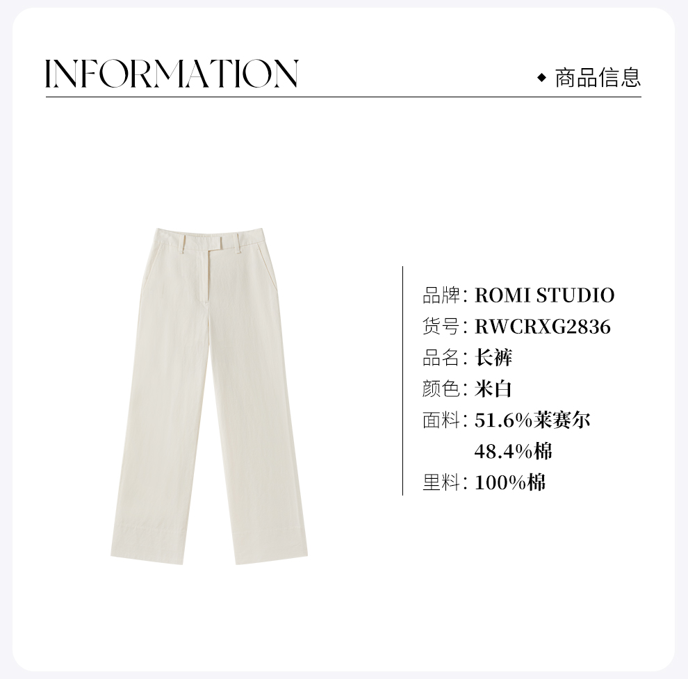 ROMI STUDIO“简约舒适”莱赛尔长绒棉九分直筒轻薄长裤 RWCRXG2836