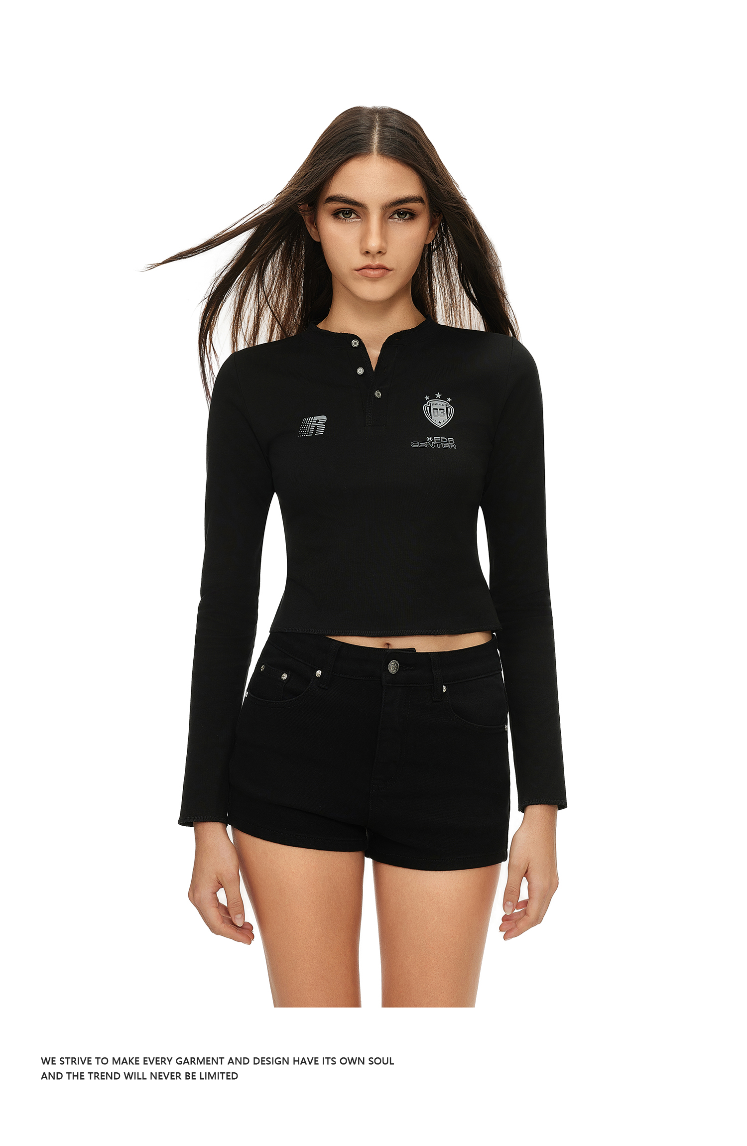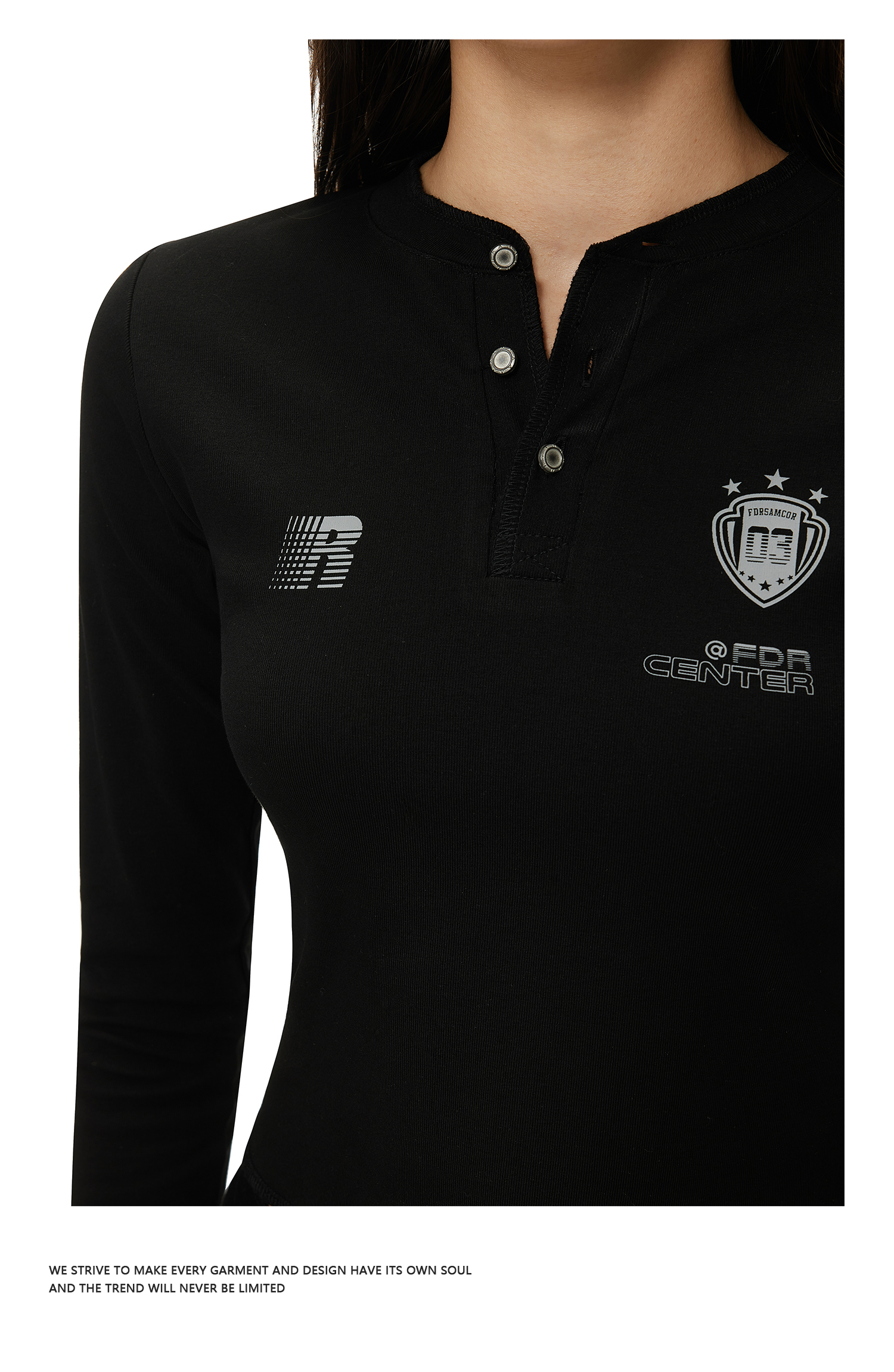 FDR官方店 徽章修身长袖T恤女秋季美式辣妹短款修身上衣