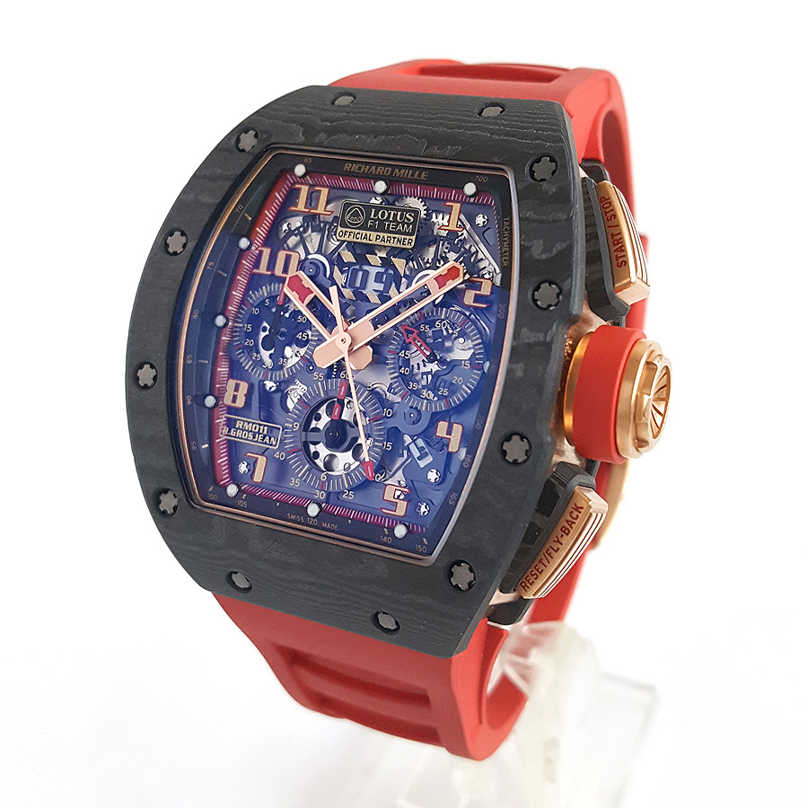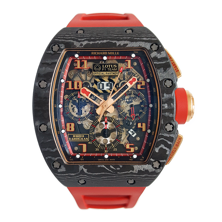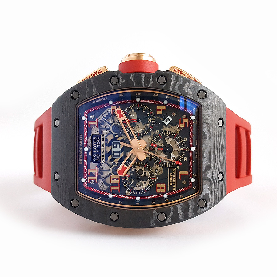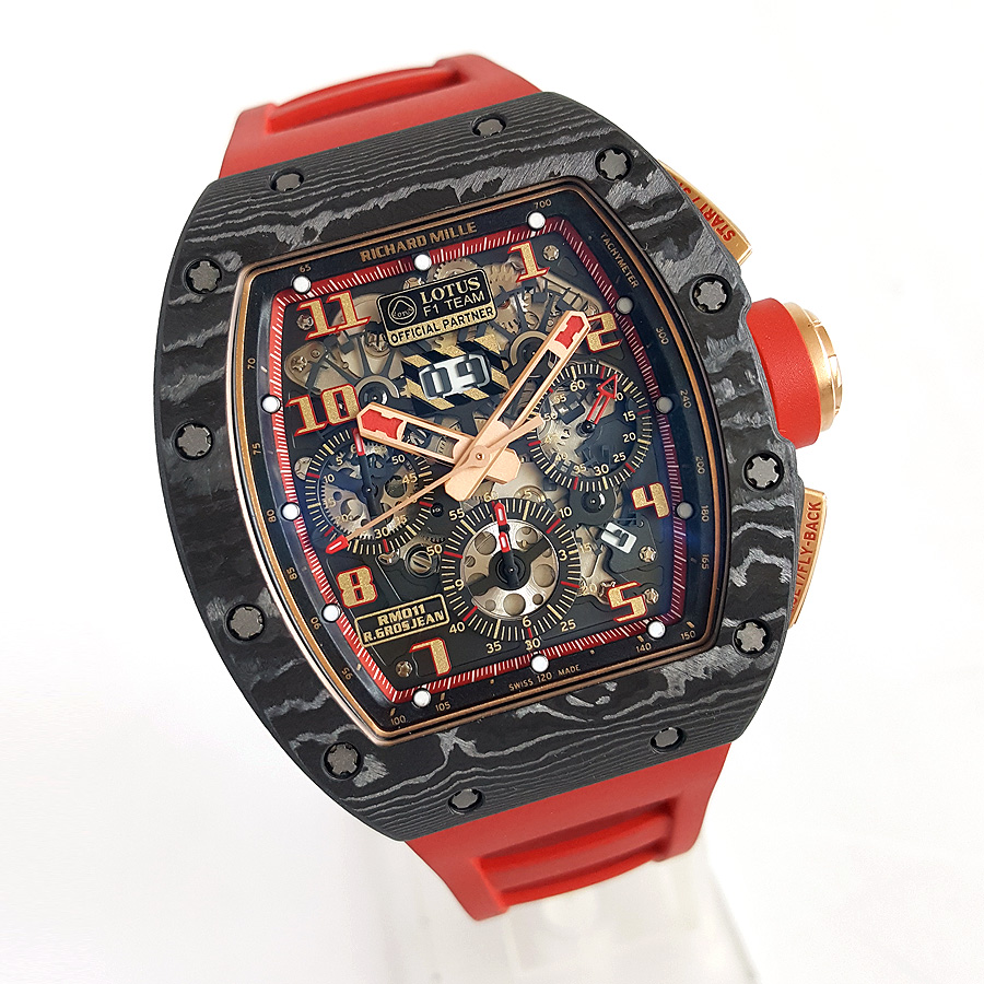 稀缺珍藏【95新】理查米尔男士系列NTPT黑碳纤维/18k玫瑰金表壳50*40mm日期显示月份显示计时自动机械男款RM011 LOTUS F1 TEAM 130323LV01