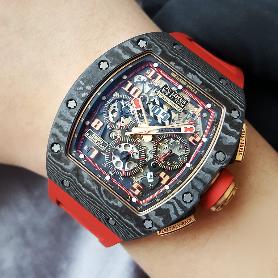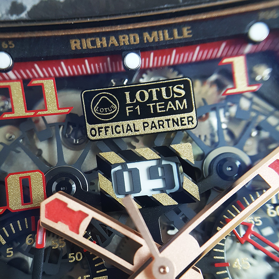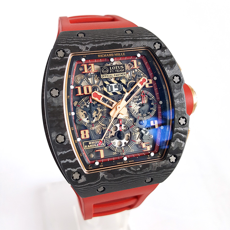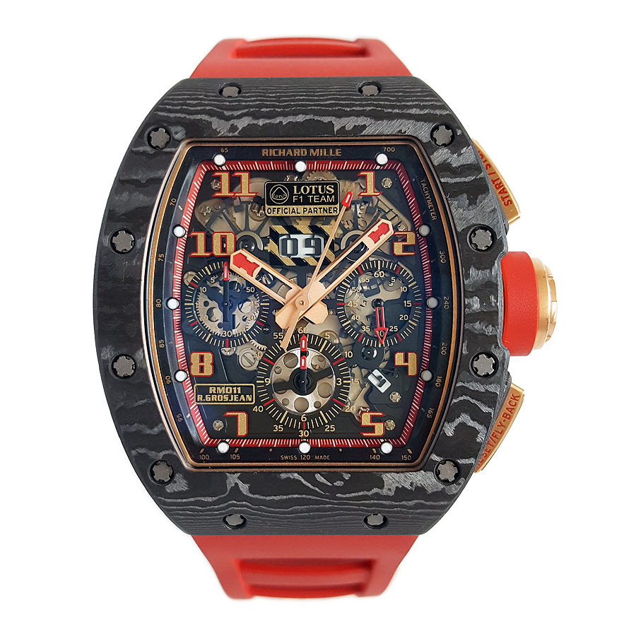 稀缺珍藏【95新】理查米尔男士系列NTPT黑碳纤维/18k玫瑰金表壳50*40mm日期显示月份显示计时自动机械男款RM011 LOTUS F1 TEAM 130323LV01