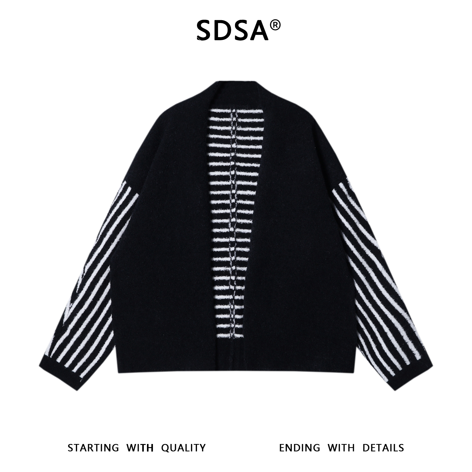25166SDSA男士秋冬新款痞帅男装慵懒风简约拼接开衫毛衣百搭时尚针织衫